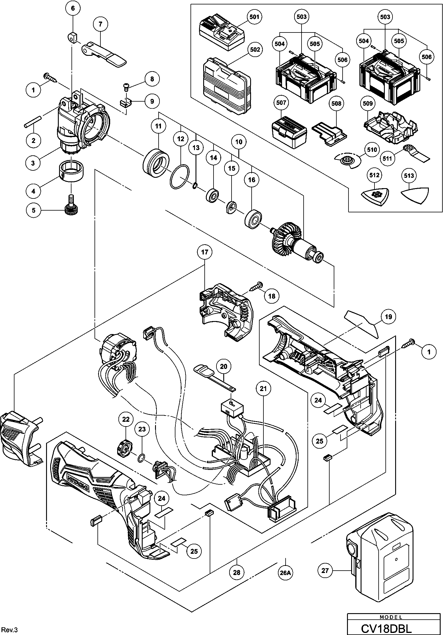 Hier finden Sie alle verfügbaren Teile und Zeichnungen der 'Hikoki CV18DBL'. Von hier aus können Sie alle gewünschten Teile direkt bestellen. Viele Teile müssen je nach Marke beim Hersteller bestellt werden, dies dauert ein bis vier Wochen. Alle Informationen, die wir haben, befinden sich auf unserer Website. Wir können Sie nicht beraten, was Sie benötigen. Dazu müssen Sie die Maschine zur Reparatur zurücksenden. Bitte beachten Sie bei der Bestellung Folgendes: