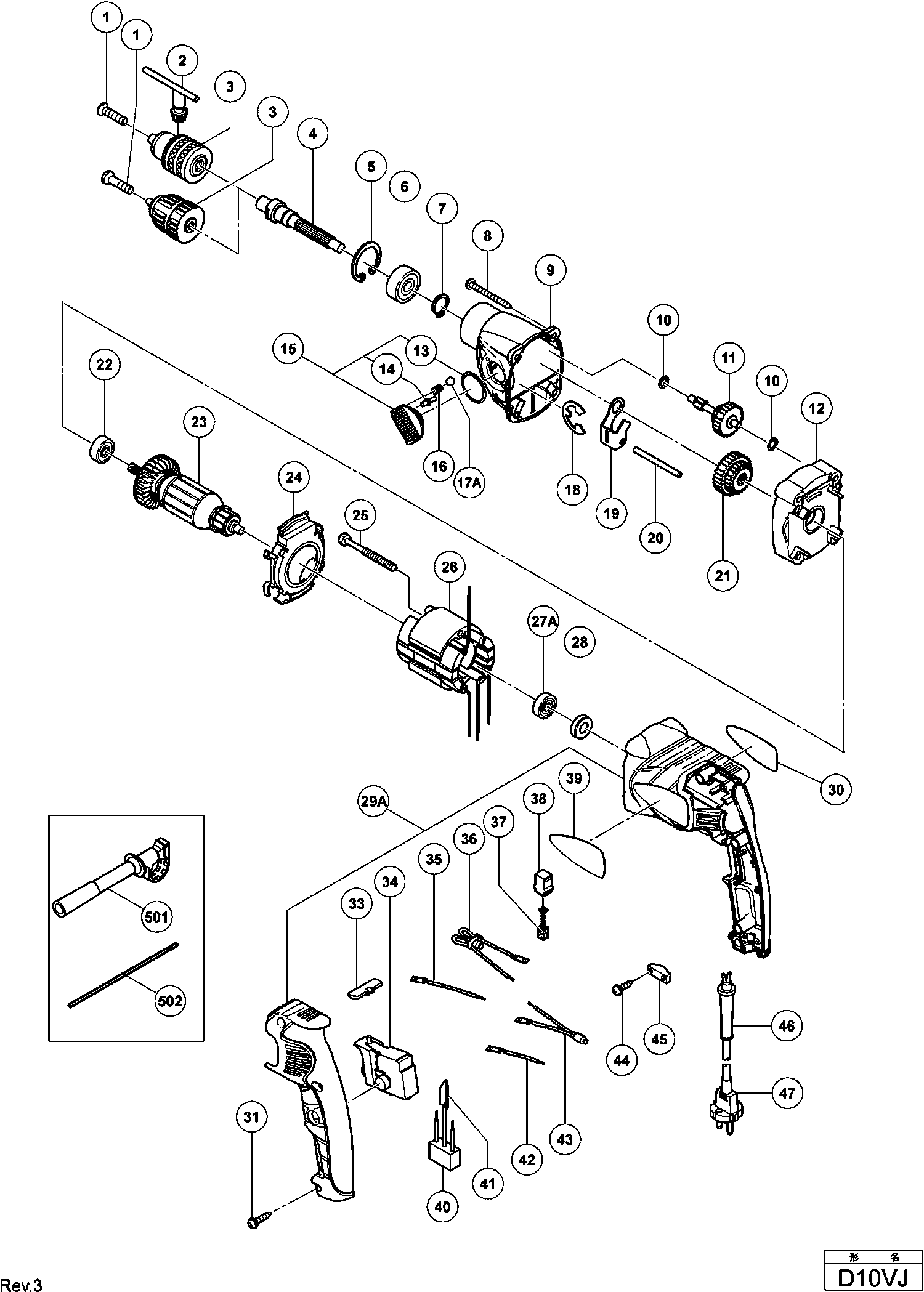 Zeichnungen der Hikoki D10VJ