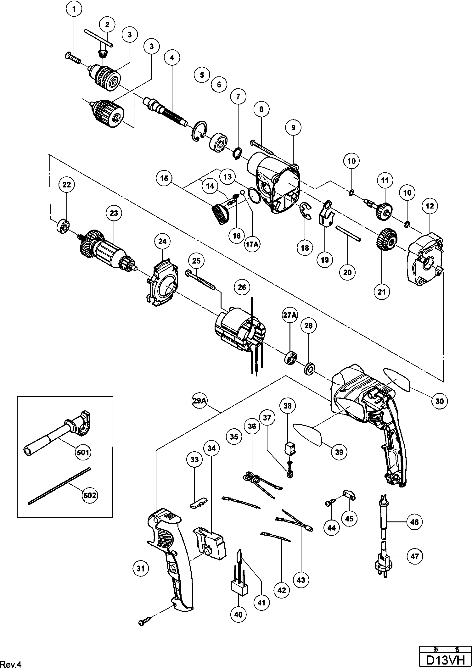 Zeichnungen der Hikoki D13VH