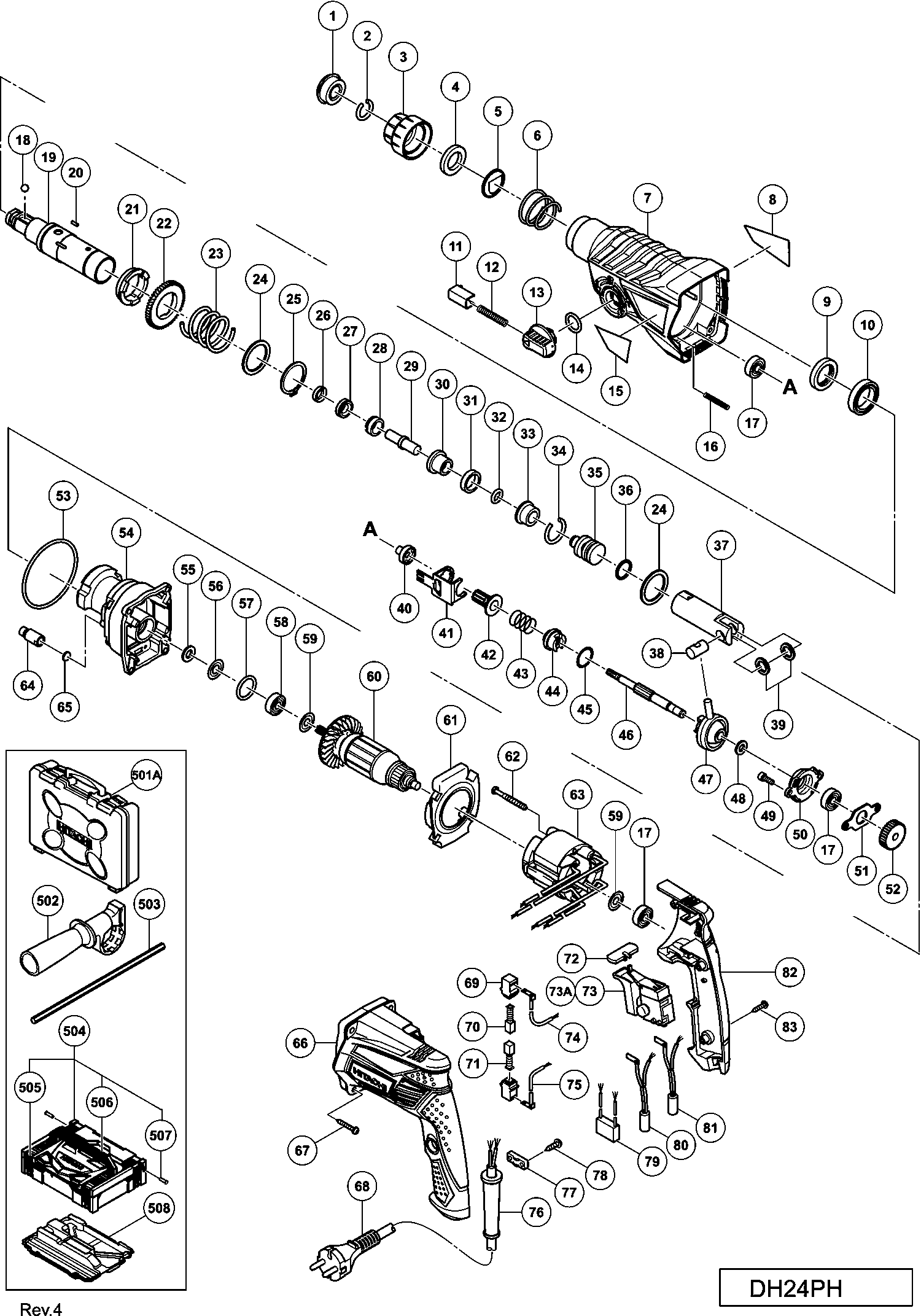 Hier finden Sie alle verfügbaren Teile und Zeichnungen der 'Hikoki DH24PH'. Von hier aus können Sie alle gewünschten Teile direkt bestellen. Viele Teile müssen je nach Marke beim Hersteller bestellt werden, dies dauert ein bis vier Wochen. Alle Informationen, die wir haben, befinden sich auf unserer Website. Wir können Sie nicht beraten, was Sie benötigen. Dazu müssen Sie die Maschine zur Reparatur zurücksenden. Bitte beachten Sie bei der Bestellung Folgendes: