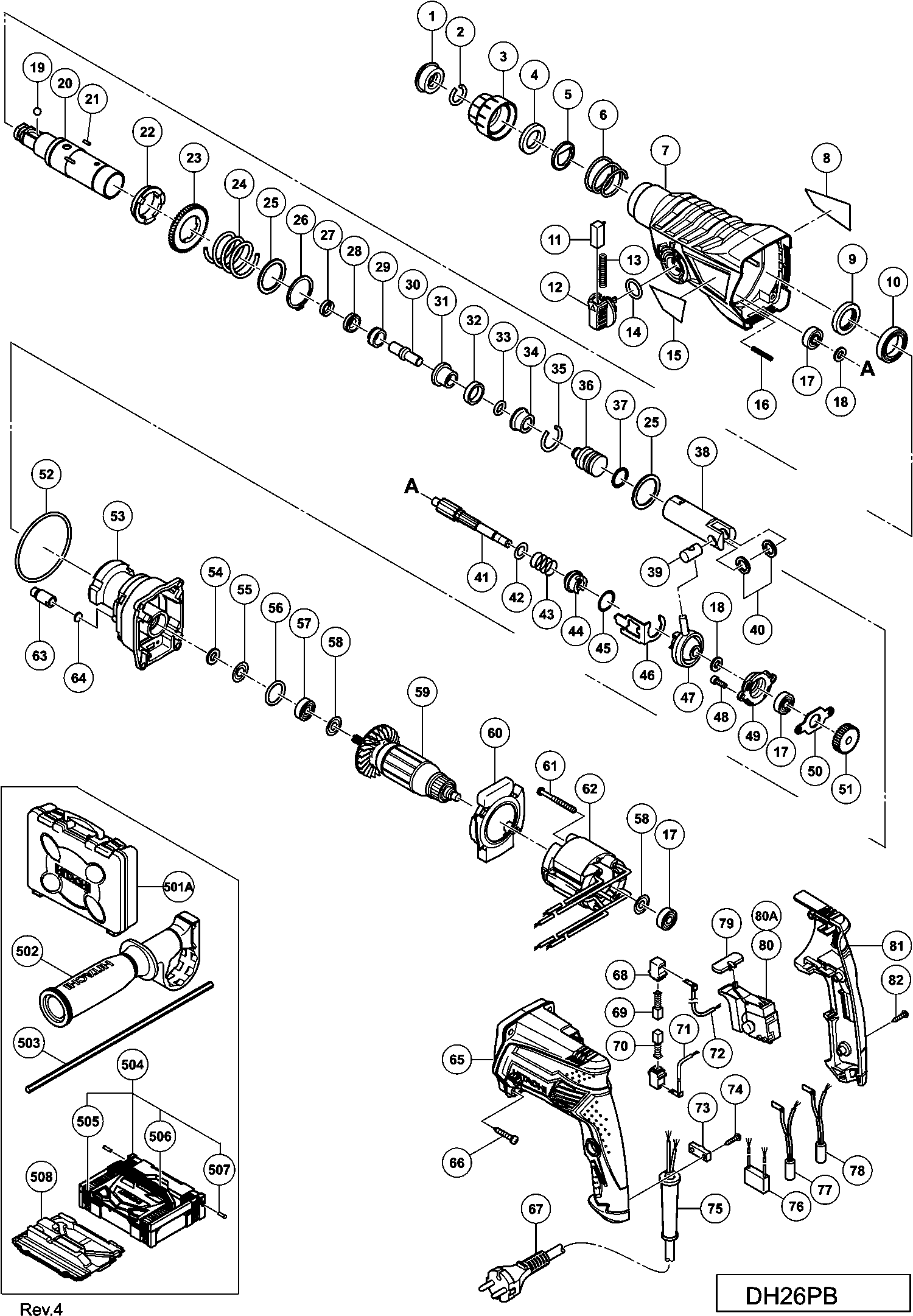 Hier finden Sie alle verfügbaren Teile und Zeichnungen der 'Hikoki DH26PB'. Von hier aus können Sie alle gewünschten Teile direkt bestellen. Viele Teile müssen je nach Marke beim Hersteller bestellt werden, dies dauert ein bis vier Wochen. Alle Informationen, die wir haben, befinden sich auf unserer Website. Wir können Sie nicht beraten, was Sie benötigen. Dazu müssen Sie die Maschine zur Reparatur zurücksenden. Bitte beachten Sie bei der Bestellung Folgendes: