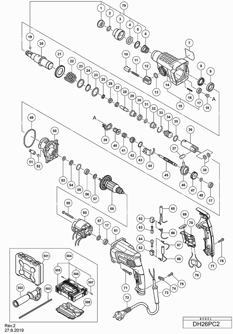 Hier finden Sie alle verfügbaren Teile und Zeichnungen der 'Hikoki DH26PC2WSZ'. Von hier aus können Sie alle gewünschten Teile direkt bestellen. Viele Teile müssen je nach Marke beim Hersteller bestellt werden, dies dauert ein bis vier Wochen. Alle Informationen, die wir haben, befinden sich auf unserer Website. Wir können Sie nicht beraten, was Sie benötigen. Dazu müssen Sie die Maschine zur Reparatur zurücksenden. Bitte beachten Sie bei der Bestellung Folgendes: