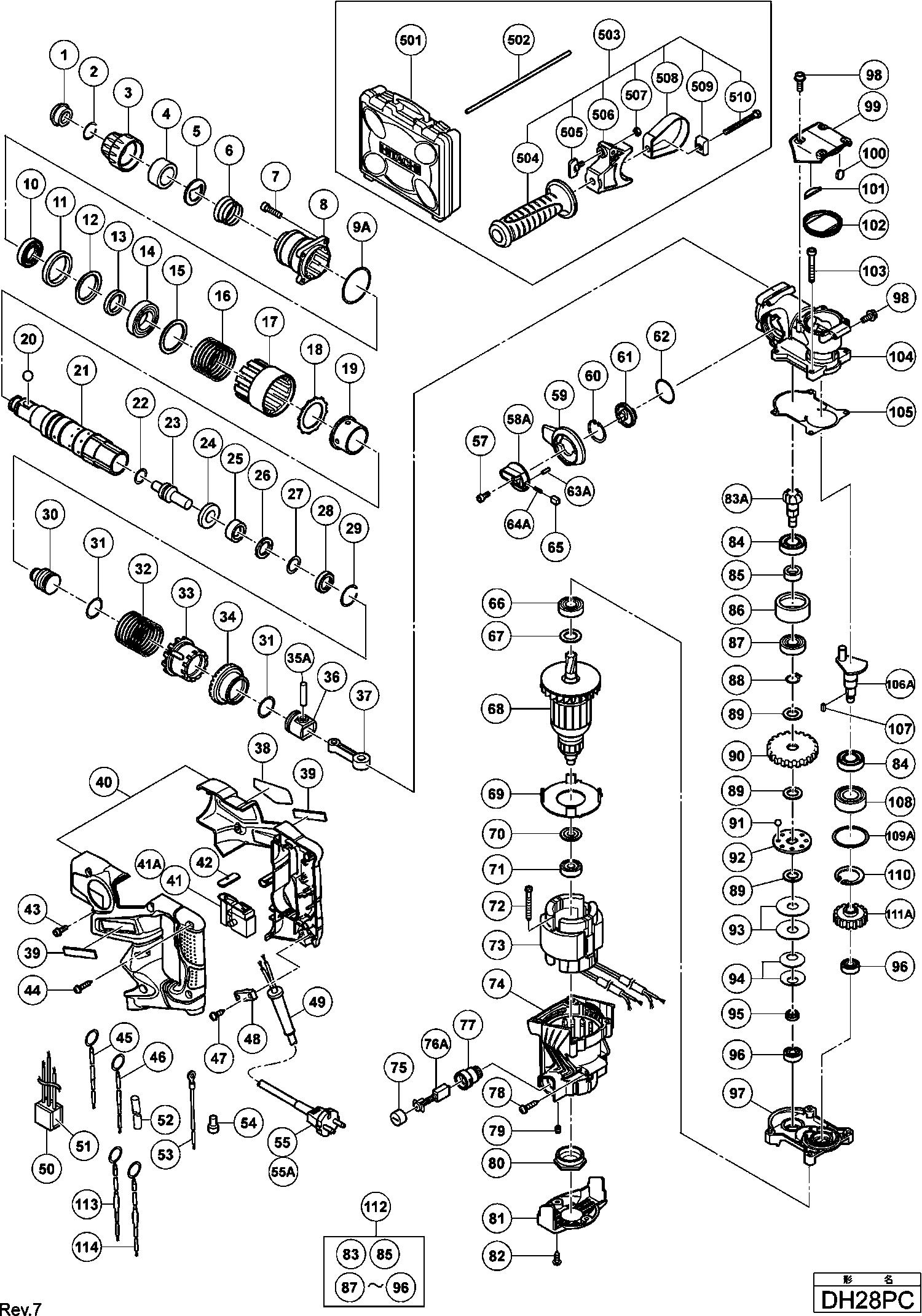 Hier finden Sie alle verfügbaren Teile und Zeichnungen der 'Hikoki DH28PC'. Von hier aus können Sie alle gewünschten Teile direkt bestellen. Viele Teile müssen je nach Marke beim Hersteller bestellt werden, dies dauert ein bis vier Wochen. Alle Informationen, die wir haben, befinden sich auf unserer Website. Wir können Sie nicht beraten, was Sie benötigen. Dazu müssen Sie die Maschine zur Reparatur zurücksenden. Bitte beachten Sie bei der Bestellung Folgendes: