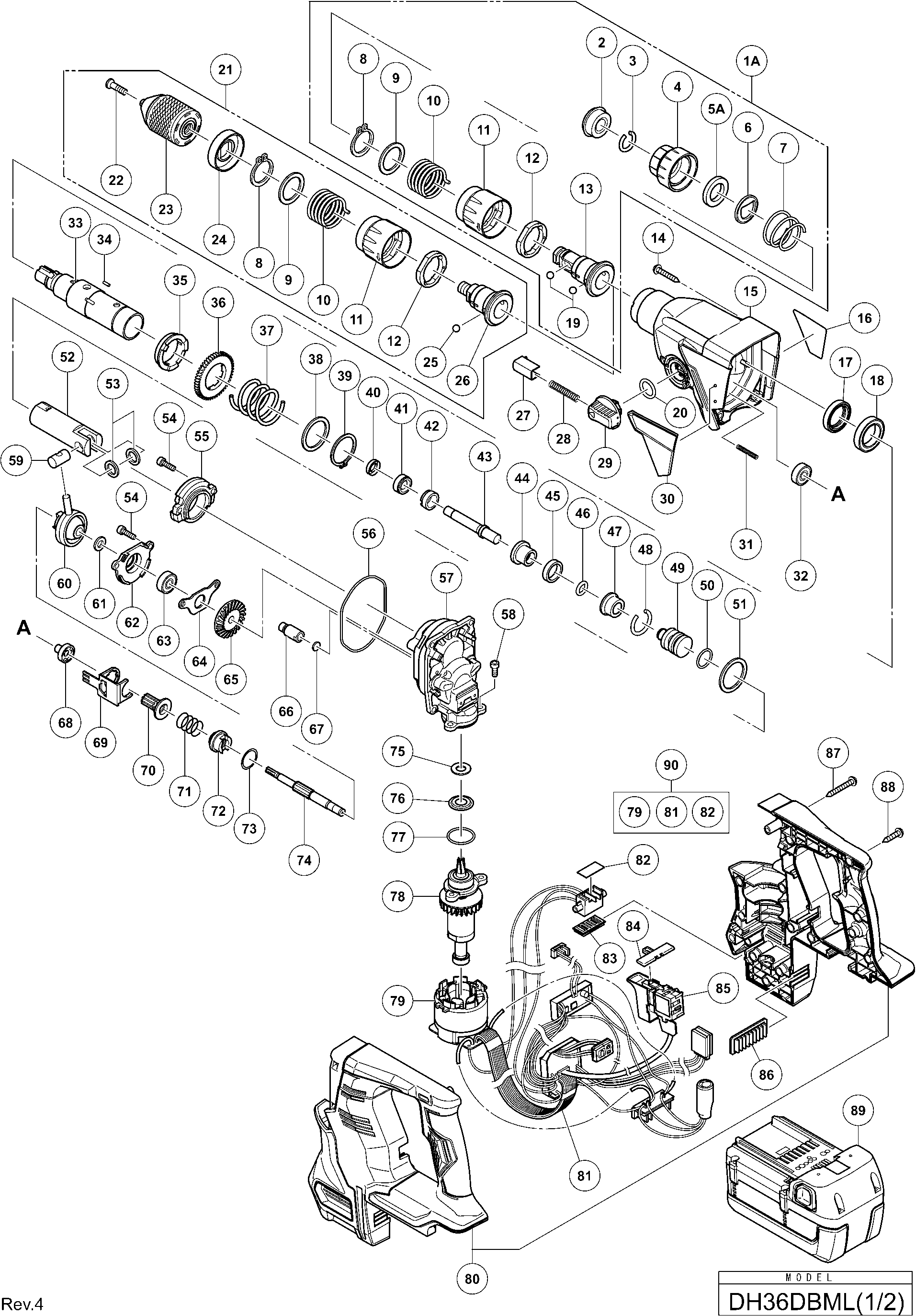 Teileliste der Hikoki DH36DBML