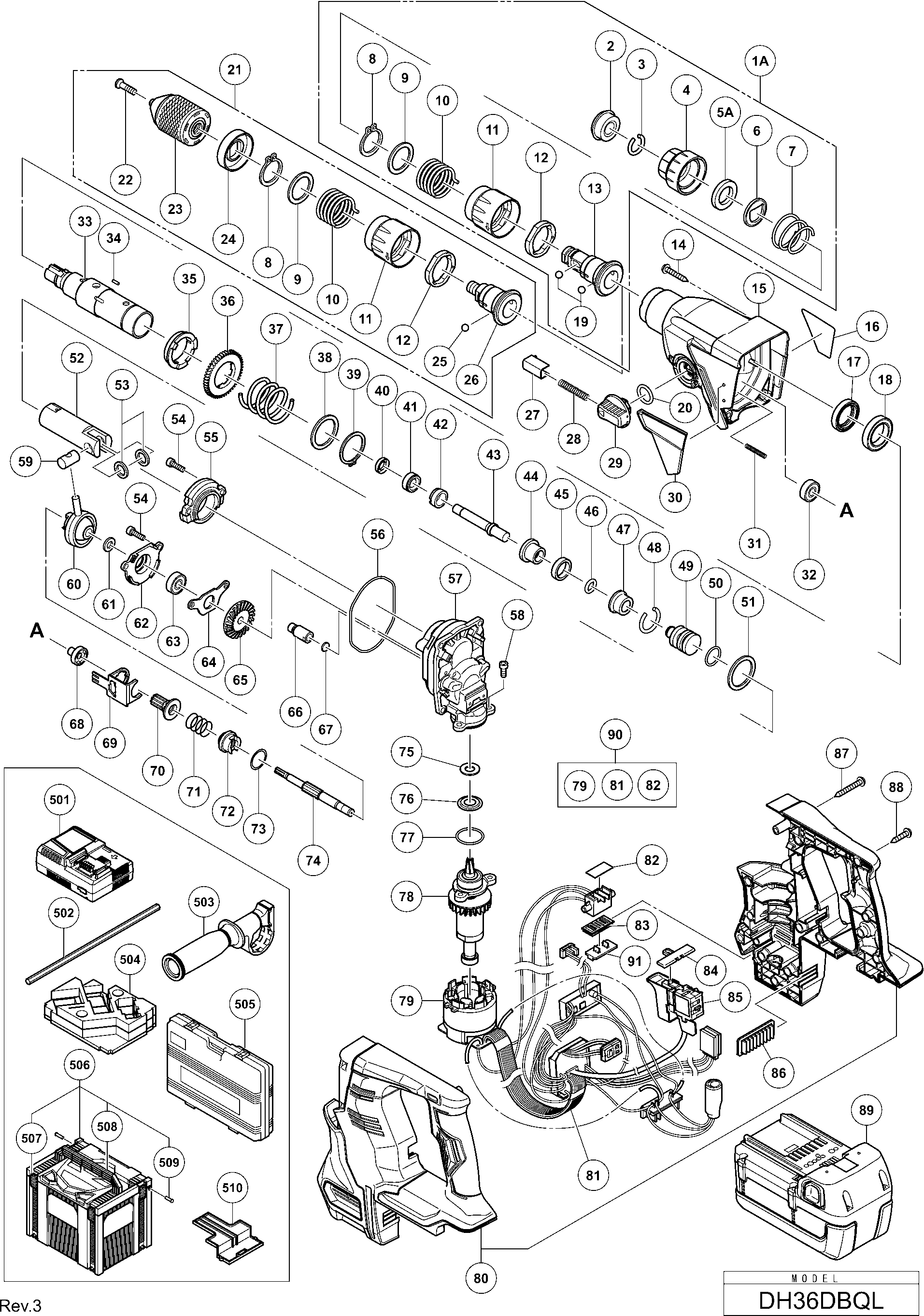 Hier finden Sie alle verfügbaren Teile und Zeichnungen der 'Hikoki DH36DBQL'. Von hier aus können Sie alle gewünschten Teile direkt bestellen. Viele Teile müssen je nach Marke beim Hersteller bestellt werden, dies dauert ein bis vier Wochen. Alle Informationen, die wir haben, befinden sich auf unserer Website. Wir können Sie nicht beraten, was Sie benötigen. Dazu müssen Sie die Maschine zur Reparatur zurücksenden. Bitte beachten Sie bei der Bestellung Folgendes:
