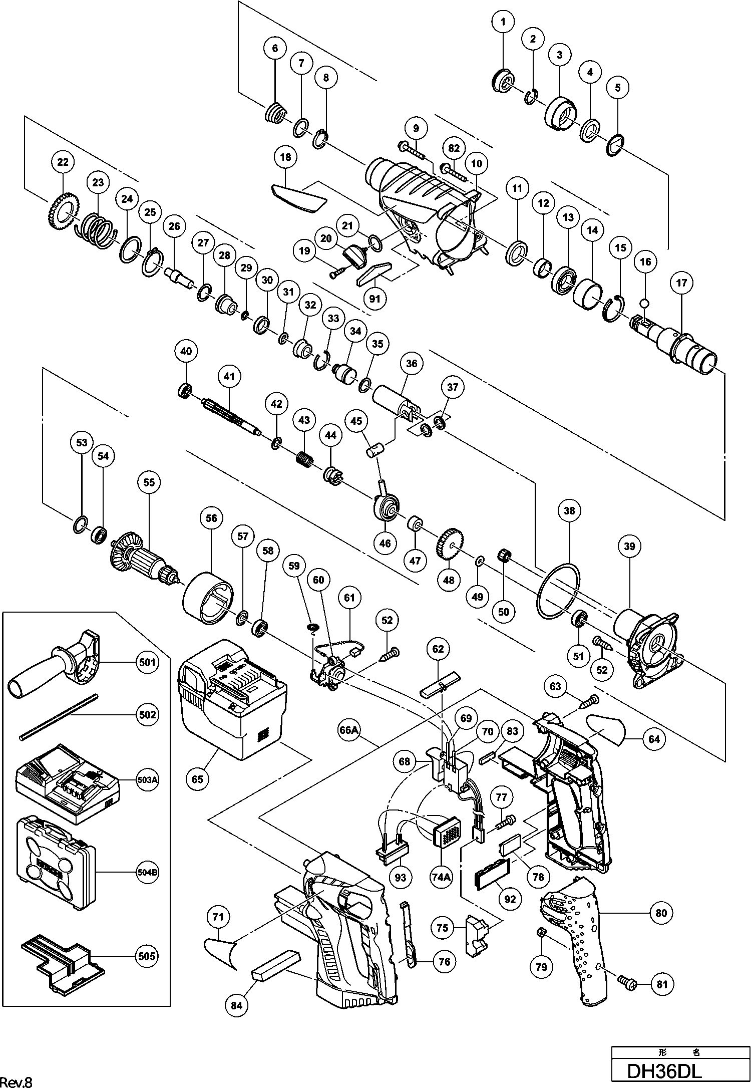 Hier finden Sie alle verfügbaren Teile und Zeichnungen der 'Hikoki DH36DL'. Von hier aus können Sie alle gewünschten Teile direkt bestellen. Viele Teile müssen je nach Marke beim Hersteller bestellt werden, dies dauert ein bis vier Wochen. Alle Informationen, die wir haben, befinden sich auf unserer Website. Wir können Sie nicht beraten, was Sie benötigen. Dazu müssen Sie die Maschine zur Reparatur zurücksenden. Bitte beachten Sie bei der Bestellung Folgendes: