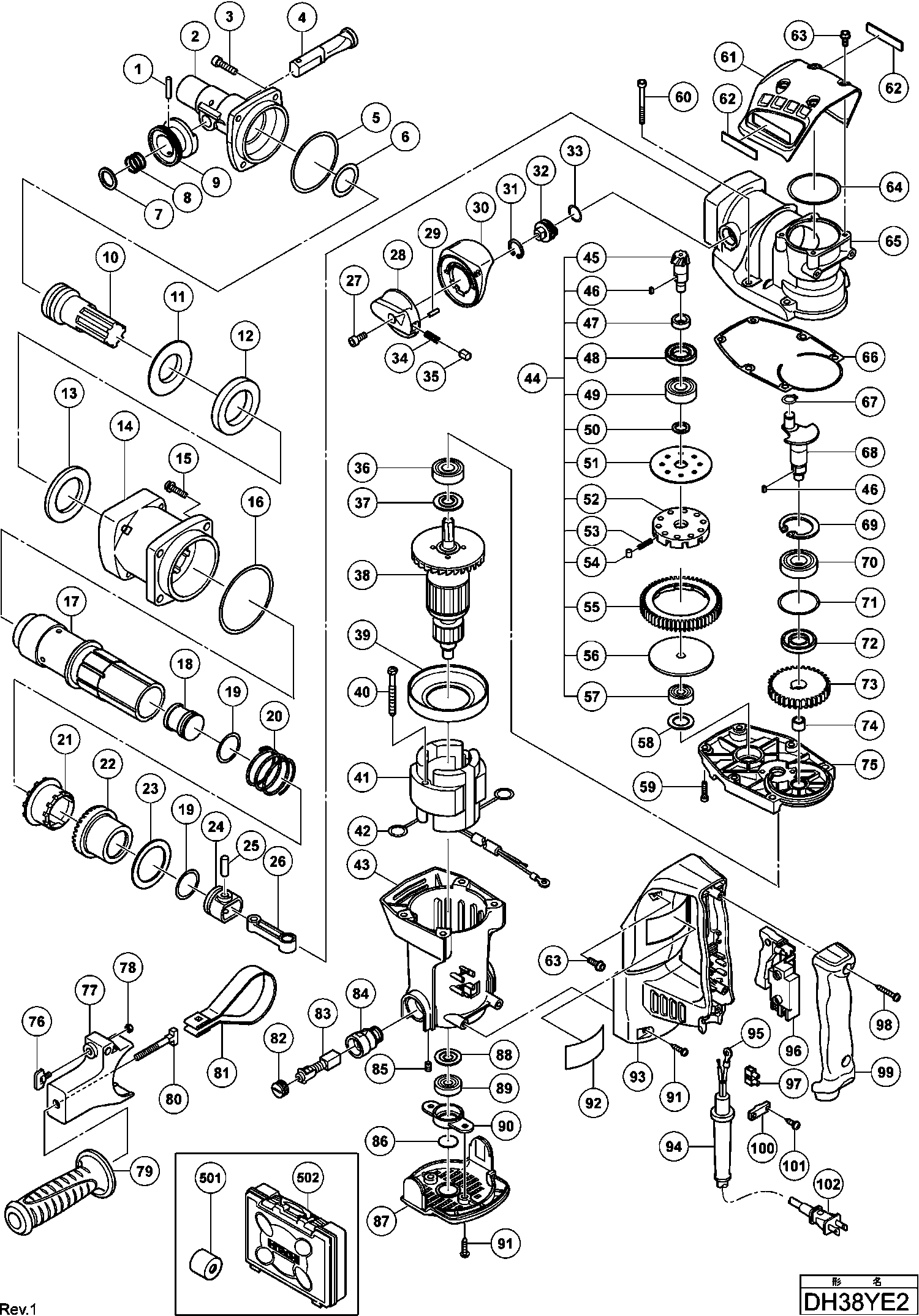 Hier finden Sie alle verfügbaren Teile und Zeichnungen der 'Hikoki DH38YE2'. Von hier aus können Sie alle gewünschten Teile direkt bestellen. Viele Teile müssen je nach Marke beim Hersteller bestellt werden, dies dauert ein bis vier Wochen. Alle Informationen, die wir haben, befinden sich auf unserer Website. Wir können Sie nicht beraten, was Sie benötigen. Dazu müssen Sie die Maschine zur Reparatur zurücksenden. Bitte beachten Sie bei der Bestellung Folgendes: