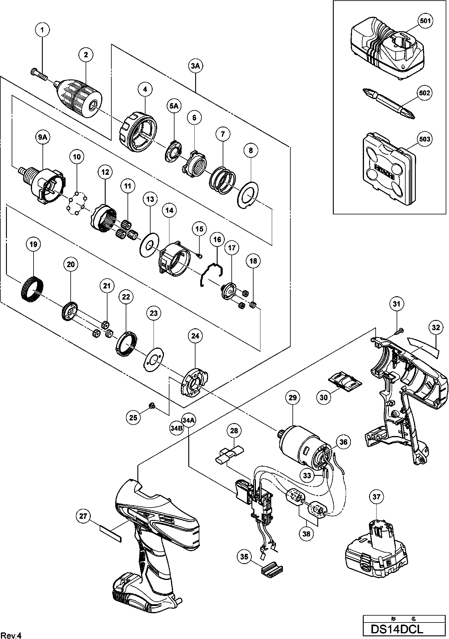 Zeichnungen der Hikoki DS14DCL