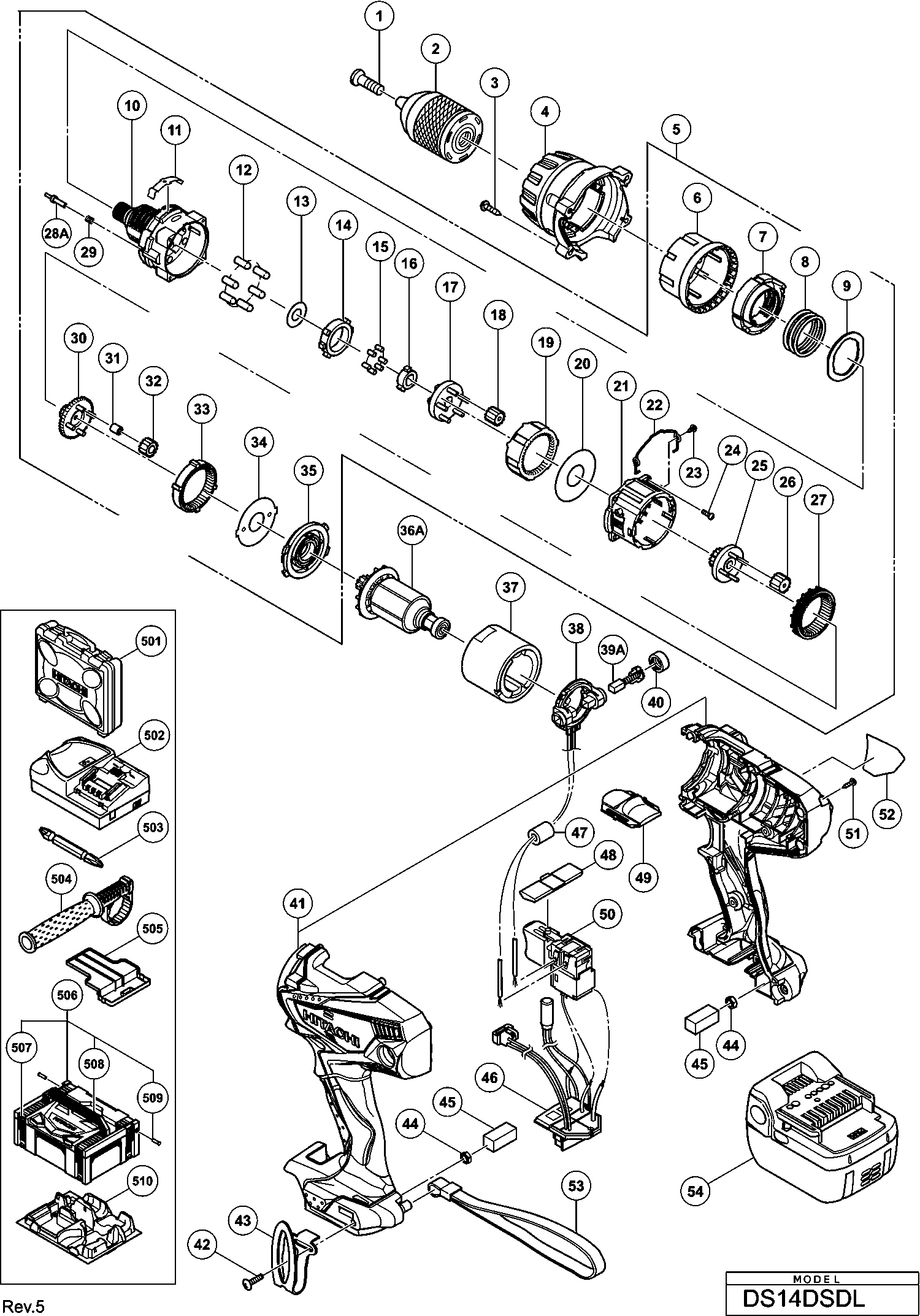 Hier finden Sie alle verfügbaren Teile und Zeichnungen der 'Hikoki DS14DSDL'. Von hier aus können Sie alle gewünschten Teile direkt bestellen. Viele Teile müssen je nach Marke beim Hersteller bestellt werden, dies dauert ein bis vier Wochen. Alle Informationen, die wir haben, befinden sich auf unserer Website. Wir können Sie nicht beraten, was Sie benötigen. Dazu müssen Sie die Maschine zur Reparatur zurücksenden. Bitte beachten Sie bei der Bestellung Folgendes: