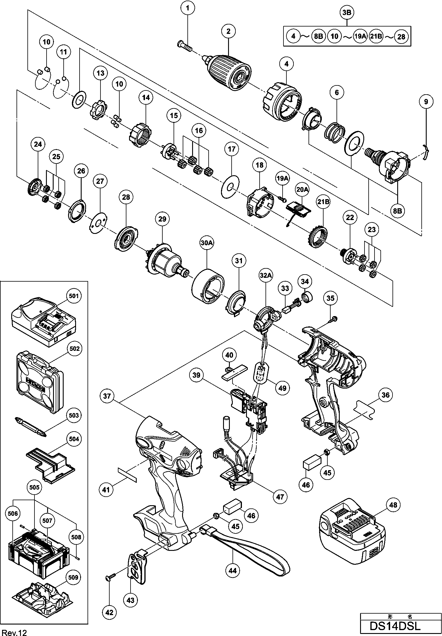Teileliste der Hikoki DS14DSL