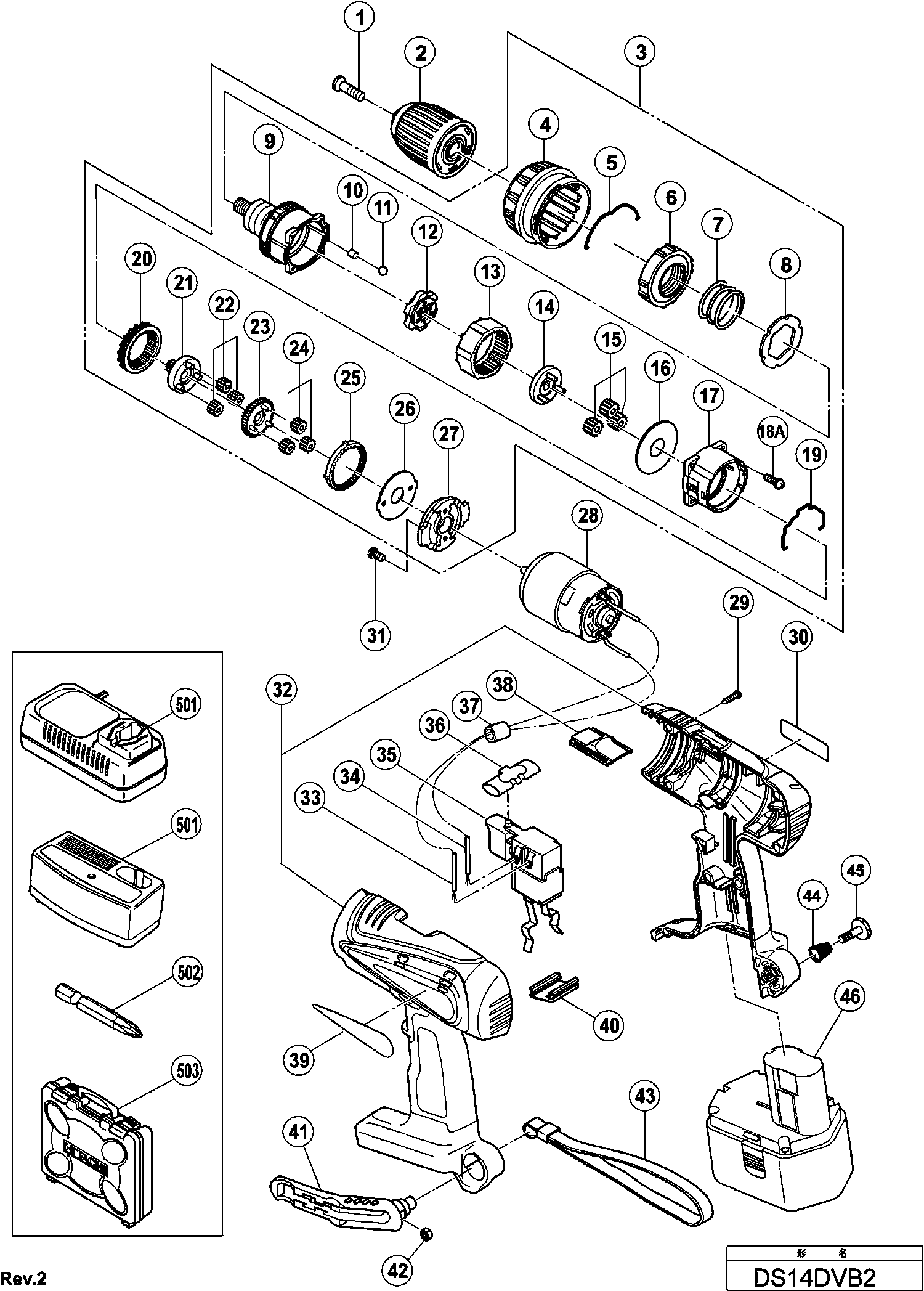 Teileliste der Hikoki DS14DVB2