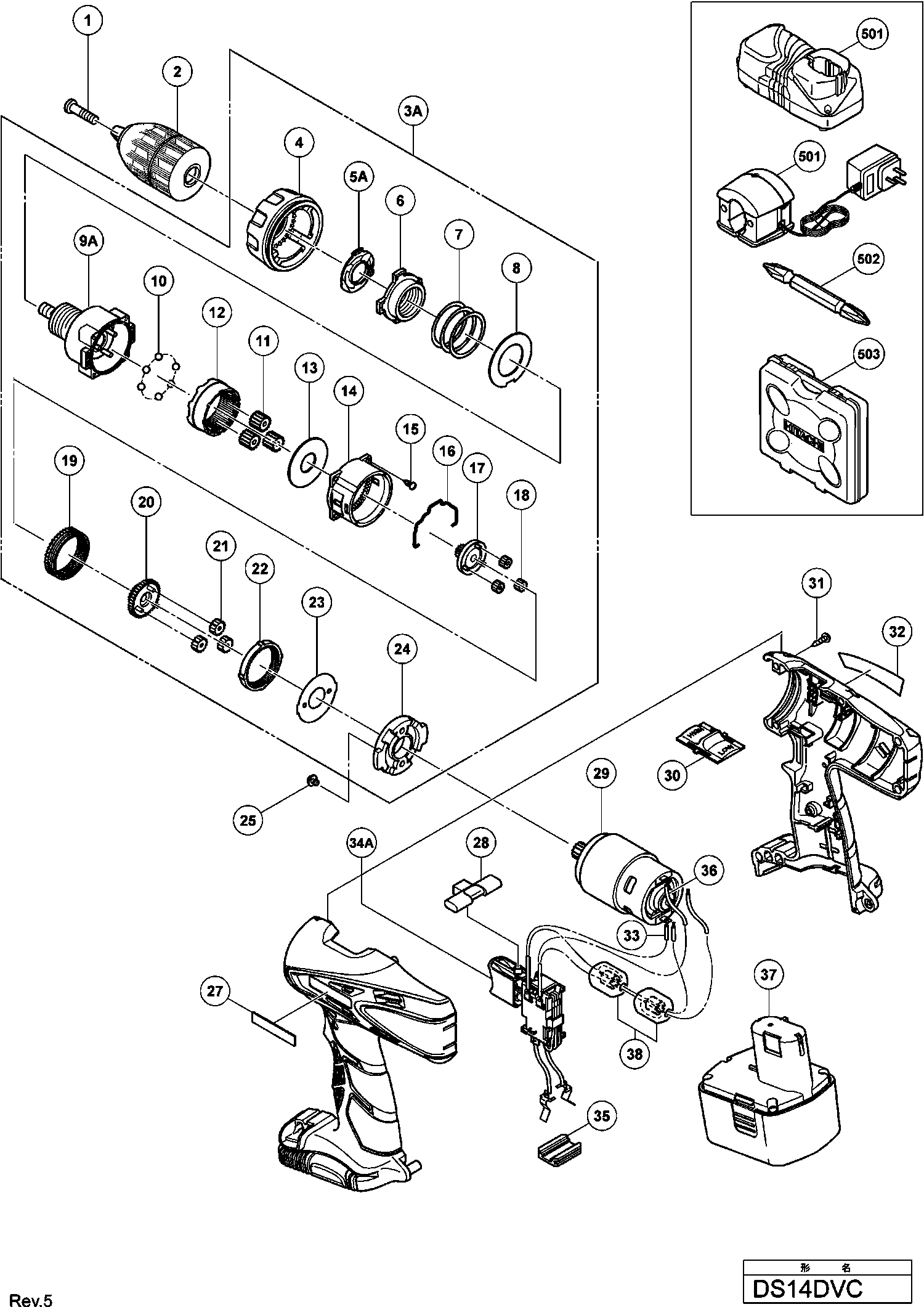 Teileliste der Hikoki DS14DVC