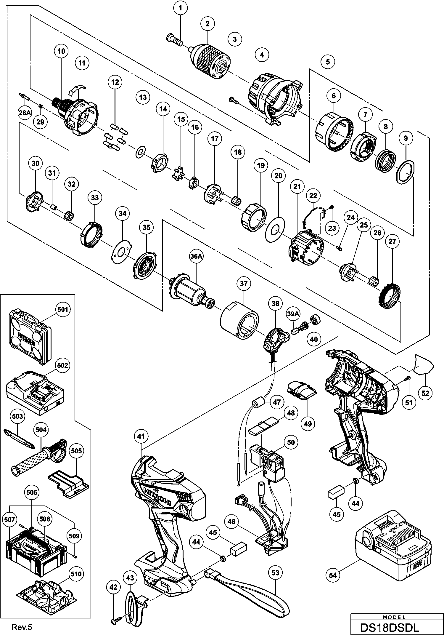 Teileliste der Hikoki DS18DSDL