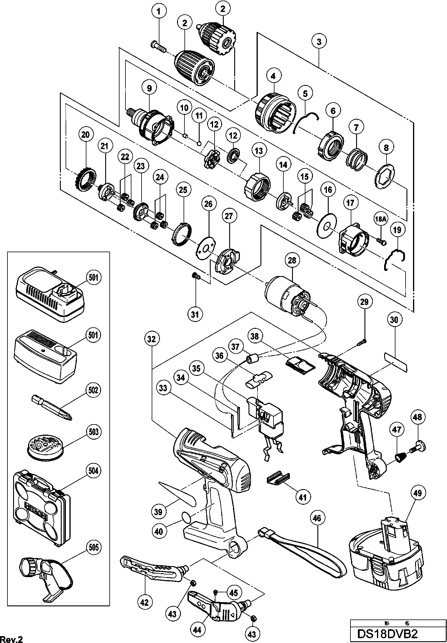 Teileliste der Hikoki DS18DVB2