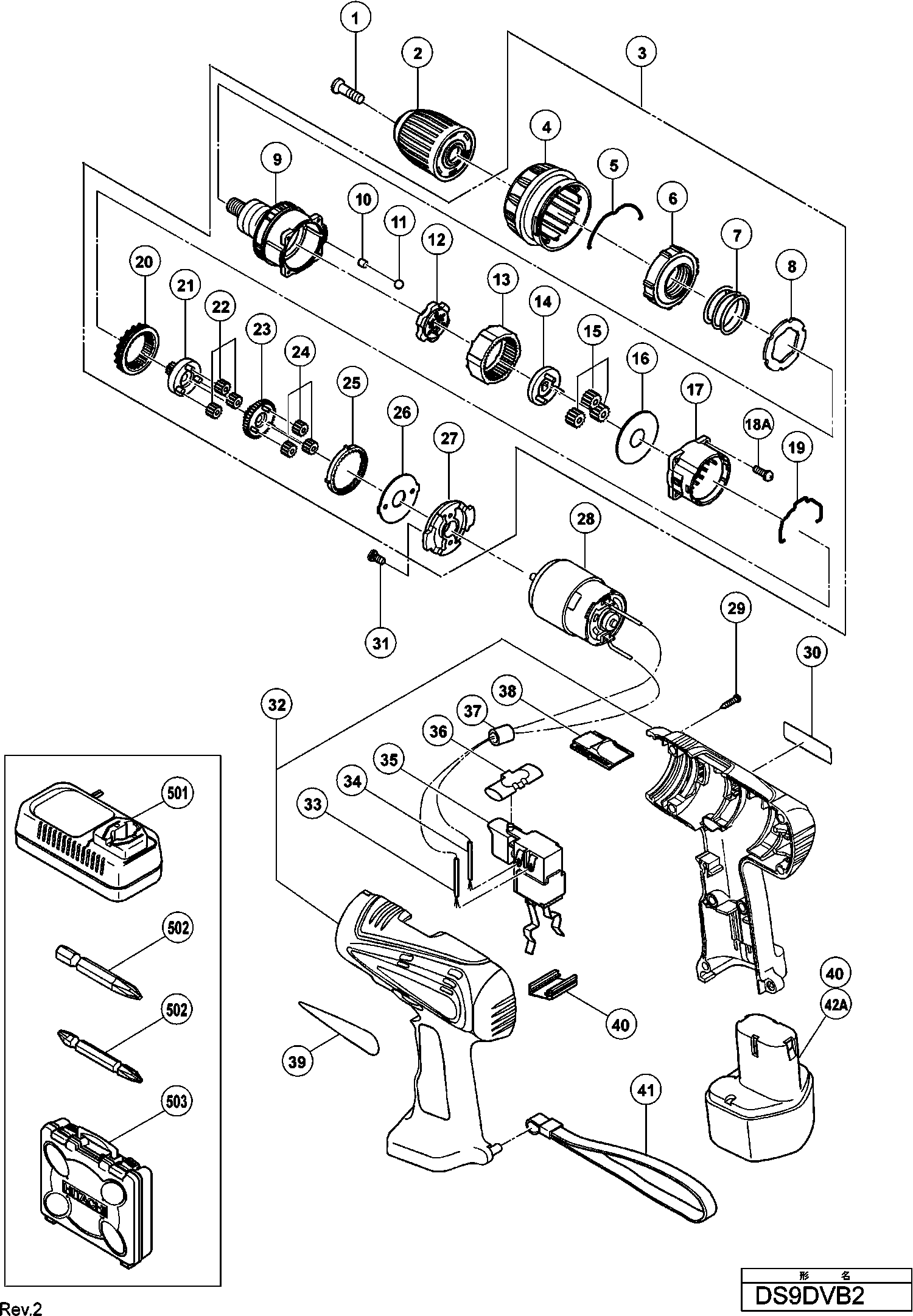 Hier finden Sie alle verfügbaren Teile und Zeichnungen der 'Hikoki DS9DVB2'. Von hier aus können Sie alle gewünschten Teile direkt bestellen. Viele Teile müssen je nach Marke beim Hersteller bestellt werden, dies dauert ein bis vier Wochen. Alle Informationen, die wir haben, befinden sich auf unserer Website. Wir können Sie nicht beraten, was Sie benötigen. Dazu müssen Sie die Maschine zur Reparatur zurücksenden. Bitte beachten Sie bei der Bestellung Folgendes: