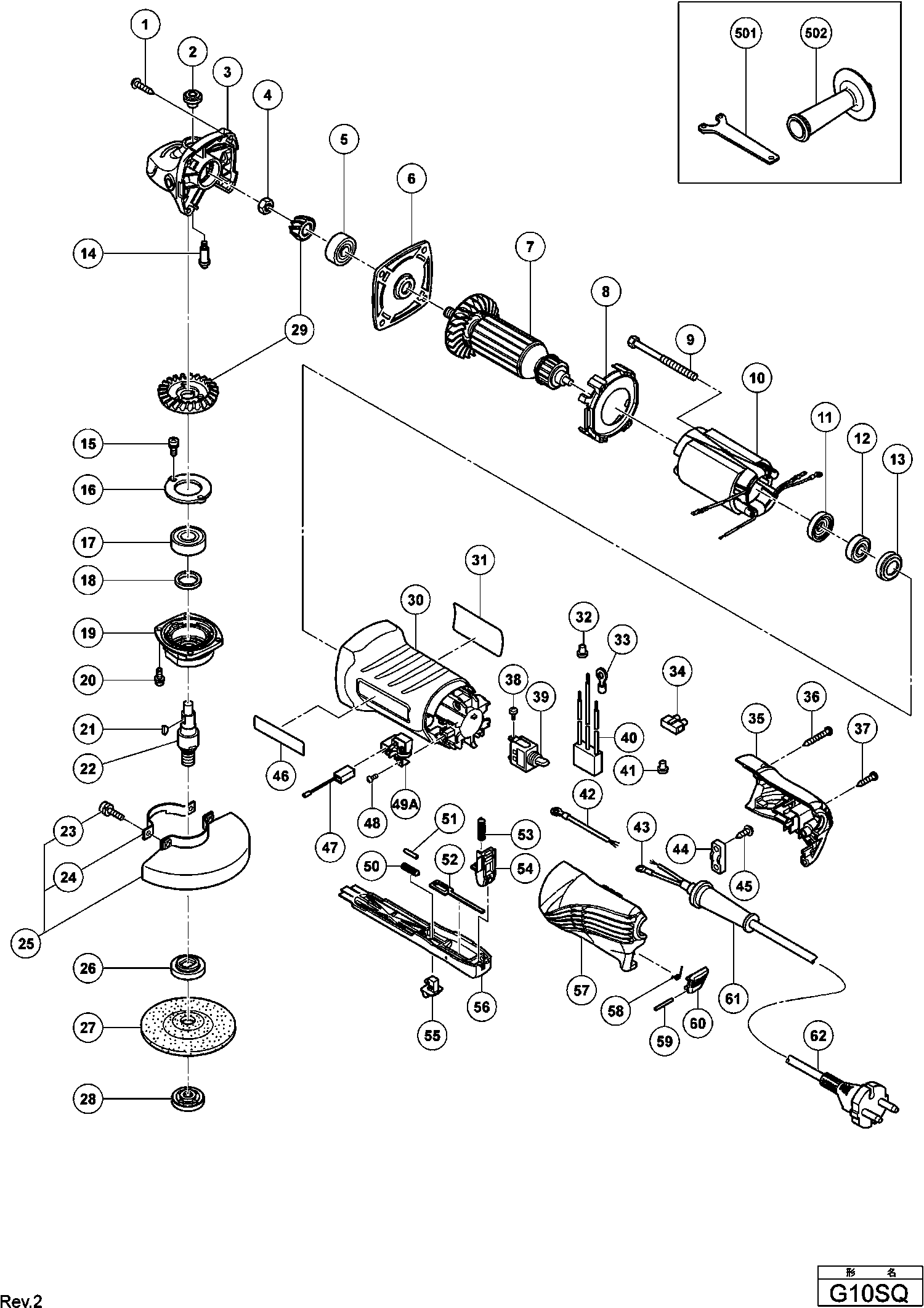 Hier finden Sie alle verfügbaren Teile und Zeichnungen der 'Hikoki G10SQ'. Von hier aus können Sie alle gewünschten Teile direkt bestellen. Viele Teile müssen je nach Marke beim Hersteller bestellt werden, dies dauert ein bis vier Wochen. Alle Informationen, die wir haben, befinden sich auf unserer Website. Wir können Sie nicht beraten, was Sie benötigen. Dazu müssen Sie die Maschine zur Reparatur zurücksenden. Bitte beachten Sie bei der Bestellung Folgendes: