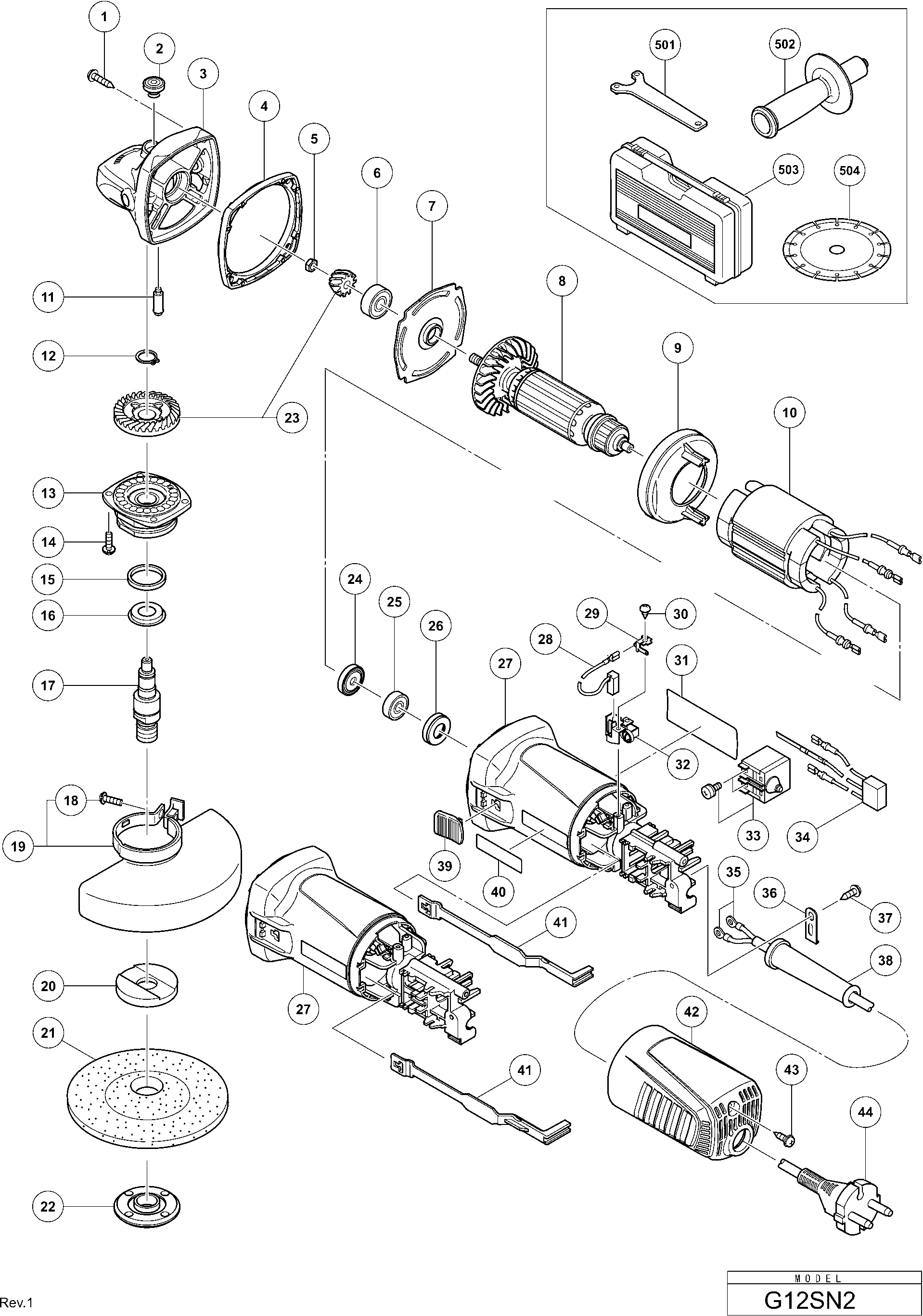 Hier finden Sie alle verfügbaren Teile und Zeichnungen der 'Hikoki G12SN2'. Von hier aus können Sie alle gewünschten Teile direkt bestellen. Viele Teile müssen je nach Marke beim Hersteller bestellt werden, dies dauert ein bis vier Wochen. Alle Informationen, die wir haben, befinden sich auf unserer Website. Wir können Sie nicht beraten, was Sie benötigen. Dazu müssen Sie die Maschine zur Reparatur zurücksenden. Bitte beachten Sie bei der Bestellung Folgendes: