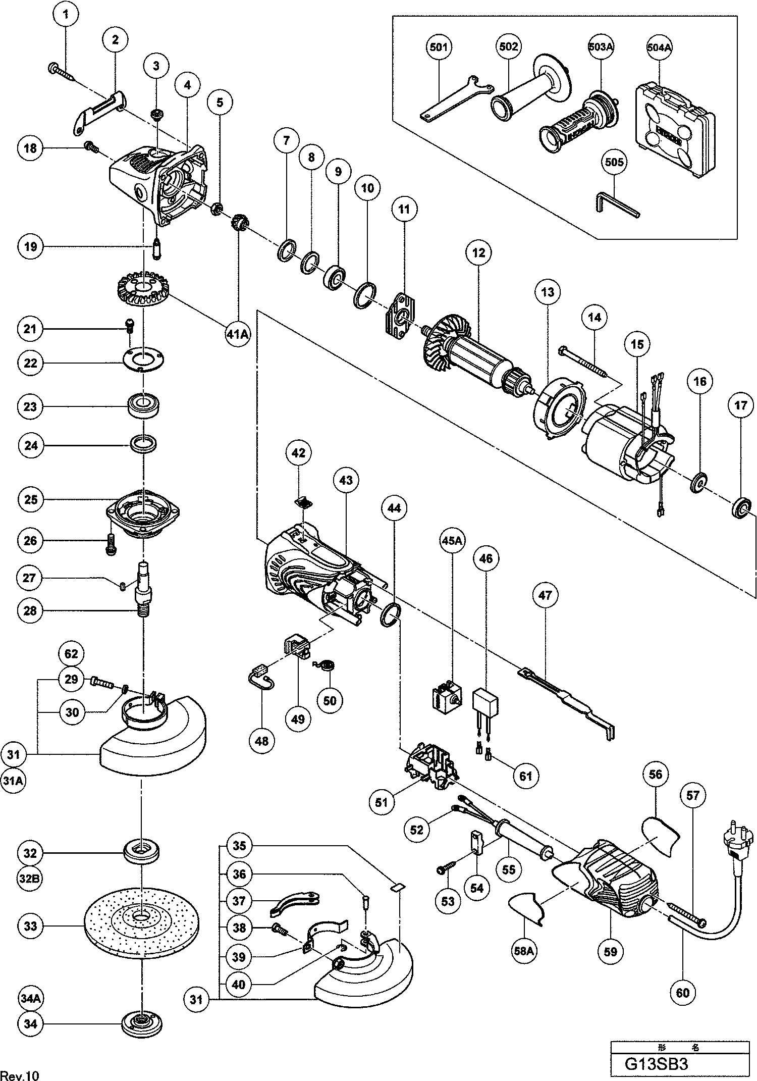 Hier finden Sie alle verfügbaren Teile und Zeichnungen der 'Hikoki G13SB3'. Von hier aus können Sie alle gewünschten Teile direkt bestellen. Viele Teile müssen je nach Marke beim Hersteller bestellt werden, dies dauert ein bis vier Wochen. Alle Informationen, die wir haben, befinden sich auf unserer Website. Wir können Sie nicht beraten, was Sie benötigen. Dazu müssen Sie die Maschine zur Reparatur zurücksenden. Bitte beachten Sie bei der Bestellung Folgendes: