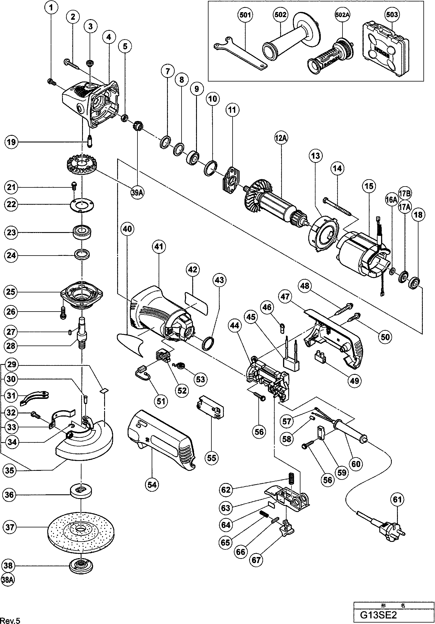 Hier finden Sie alle verfügbaren Teile und Zeichnungen der 'Hikoki G13SE2'. Von hier aus können Sie alle gewünschten Teile direkt bestellen. Viele Teile müssen je nach Marke beim Hersteller bestellt werden, dies dauert ein bis vier Wochen. Alle Informationen, die wir haben, befinden sich auf unserer Website. Wir können Sie nicht beraten, was Sie benötigen. Dazu müssen Sie die Maschine zur Reparatur zurücksenden. Bitte beachten Sie bei der Bestellung Folgendes: