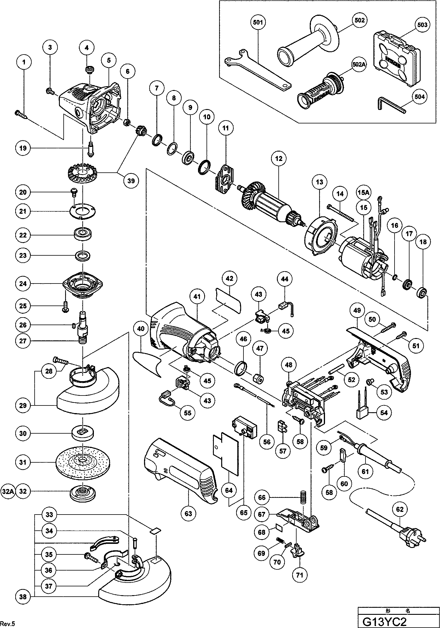 Teileliste der Hikoki G13YC2