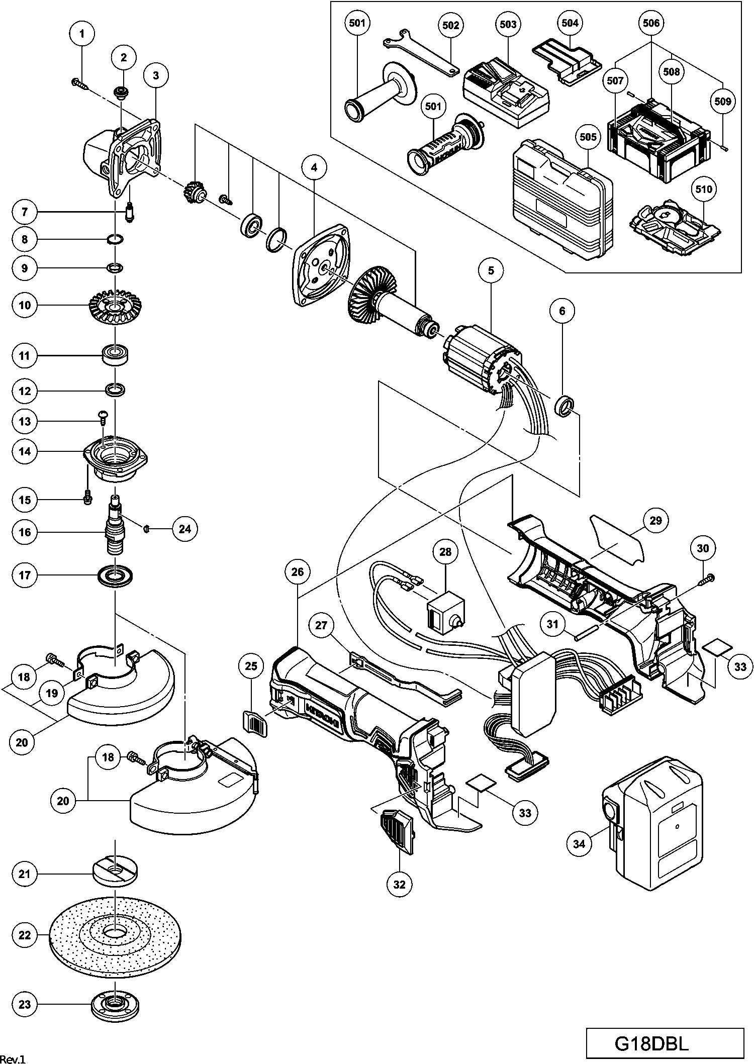 Teileliste der Hikoki G18DBL
