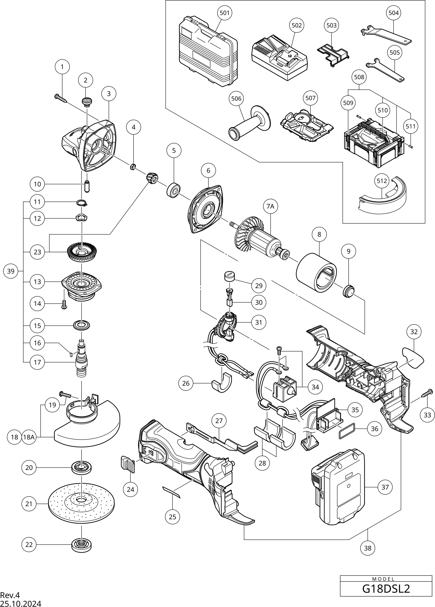 Teileliste der Hikoki G18DSL2
