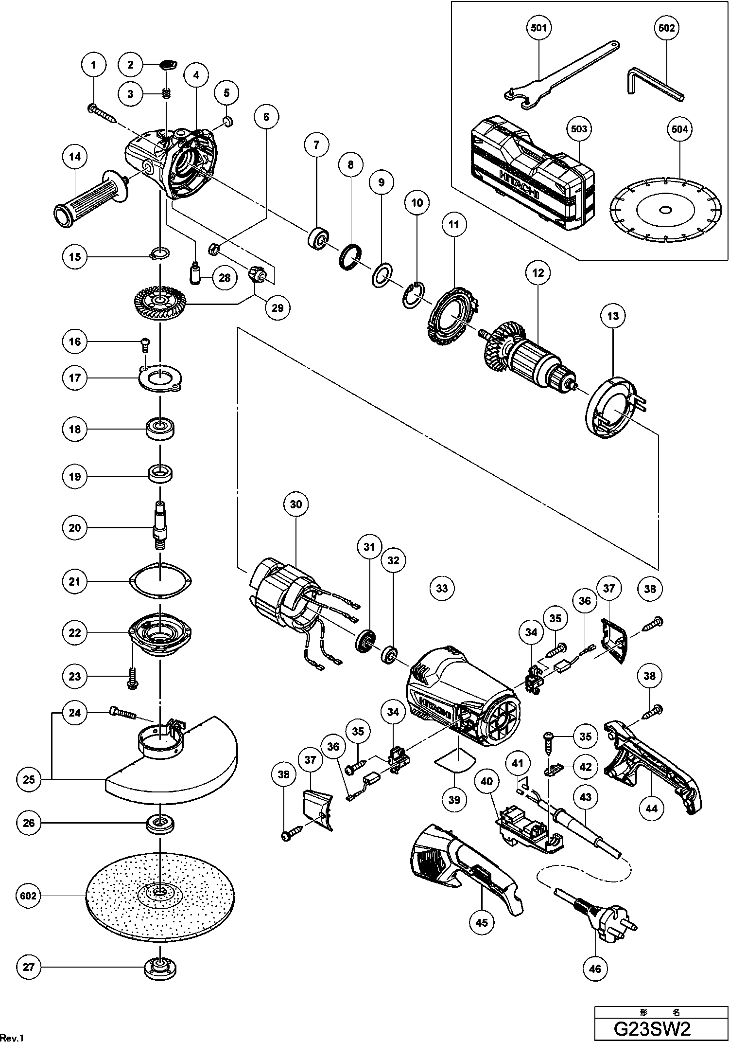 Hier finden Sie alle verfügbaren Teile und Zeichnungen der 'Hikoki G23SW2'. Von hier aus können Sie alle gewünschten Teile direkt bestellen. Viele Teile müssen je nach Marke beim Hersteller bestellt werden, dies dauert ein bis vier Wochen. Alle Informationen, die wir haben, befinden sich auf unserer Website. Wir können Sie nicht beraten, was Sie benötigen. Dazu müssen Sie die Maschine zur Reparatur zurücksenden. Bitte beachten Sie bei der Bestellung Folgendes: