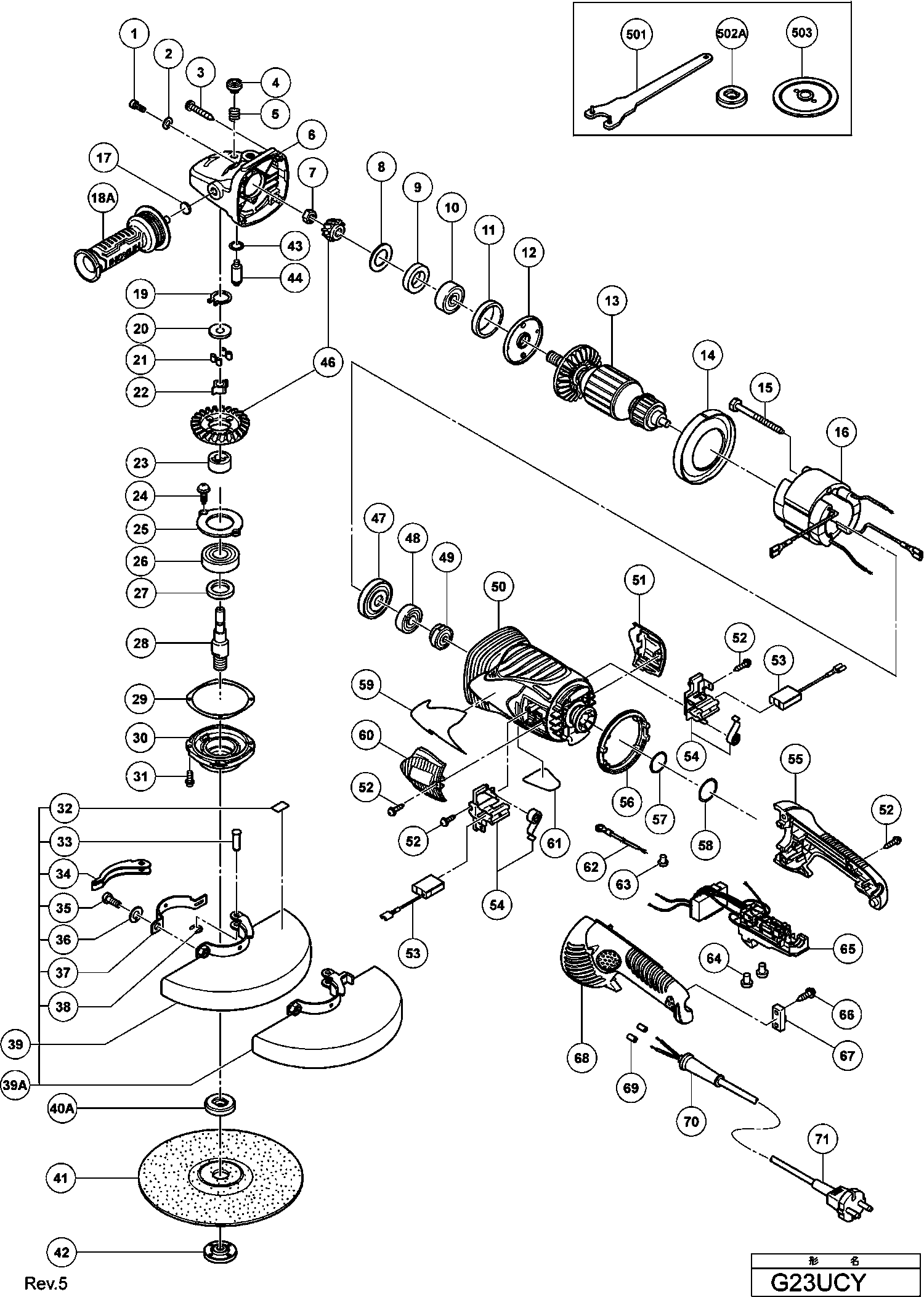 Hier finden Sie alle verfügbaren Teile und Zeichnungen der 'Hikoki G23UCY'. Von hier aus können Sie alle gewünschten Teile direkt bestellen. Viele Teile müssen je nach Marke beim Hersteller bestellt werden, dies dauert ein bis vier Wochen. Alle Informationen, die wir haben, befinden sich auf unserer Website. Wir können Sie nicht beraten, was Sie benötigen. Dazu müssen Sie die Maschine zur Reparatur zurücksenden. Bitte beachten Sie bei der Bestellung Folgendes:
