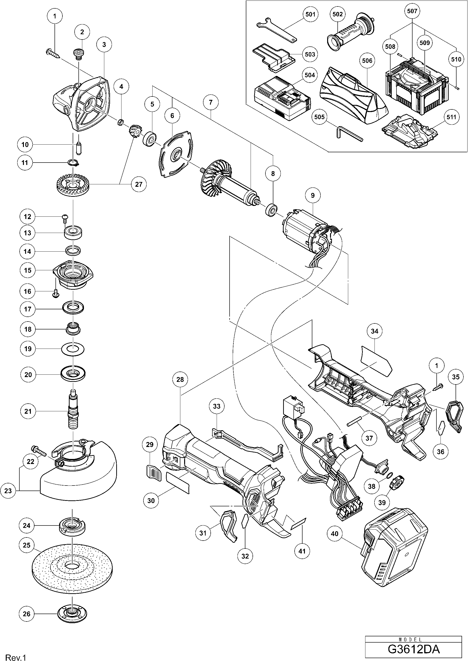 Hier finden Sie alle verfügbaren Teile und Zeichnungen der 'Hikoki G3612DA'. Von hier aus können Sie alle gewünschten Teile direkt bestellen. Viele Teile müssen je nach Marke beim Hersteller bestellt werden, dies dauert ein bis vier Wochen. Alle Informationen, die wir haben, befinden sich auf unserer Website. Wir können Sie nicht beraten, was Sie benötigen. Dazu müssen Sie die Maschine zur Reparatur zurücksenden. Bitte beachten Sie bei der Bestellung Folgendes: