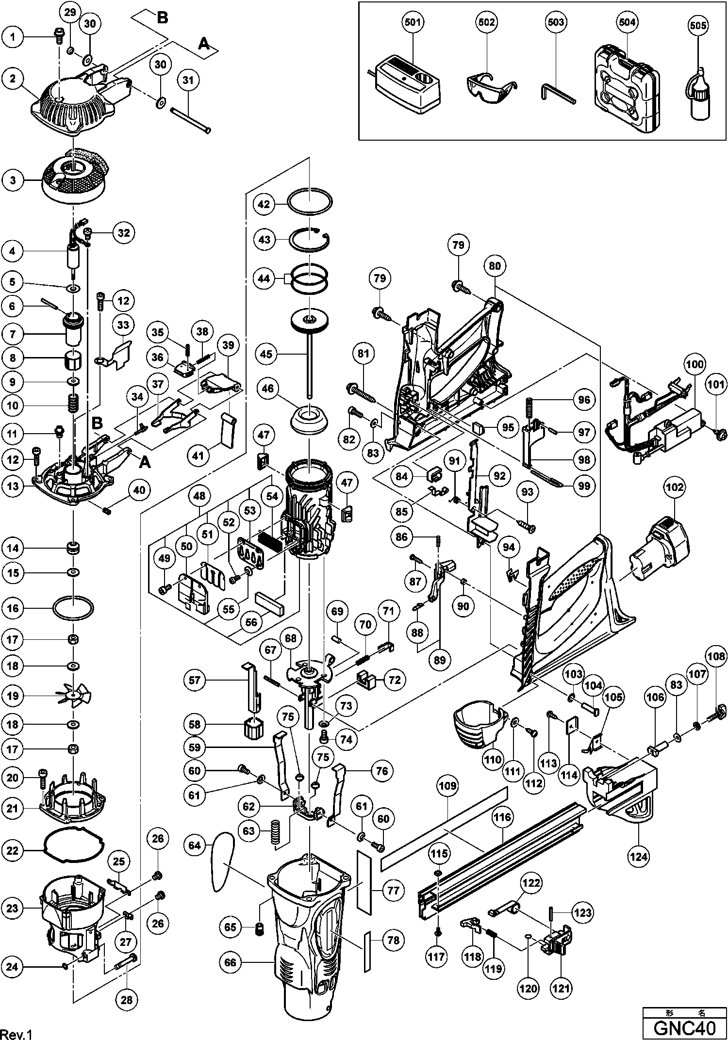 Teileliste der Hikoki GNC40