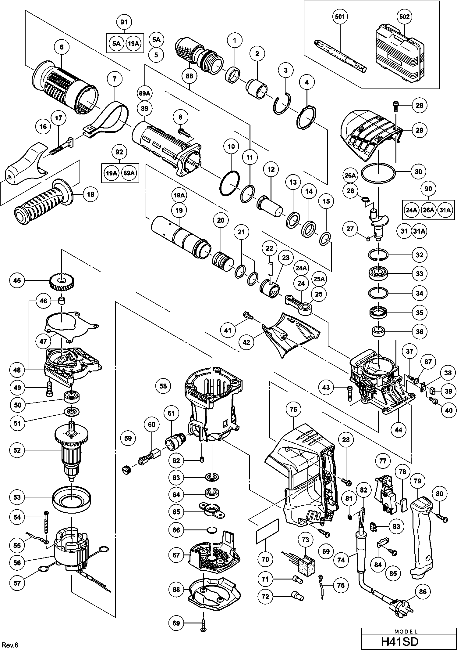 Hier finden Sie alle verfügbaren Teile und Zeichnungen der 'Hikoki H41SD'. Von hier aus können Sie alle gewünschten Teile direkt bestellen. Viele Teile müssen je nach Marke beim Hersteller bestellt werden, dies dauert ein bis vier Wochen. Alle Informationen, die wir haben, befinden sich auf unserer Website. Wir können Sie nicht beraten, was Sie benötigen. Dazu müssen Sie die Maschine zur Reparatur zurücksenden. Bitte beachten Sie bei der Bestellung Folgendes: