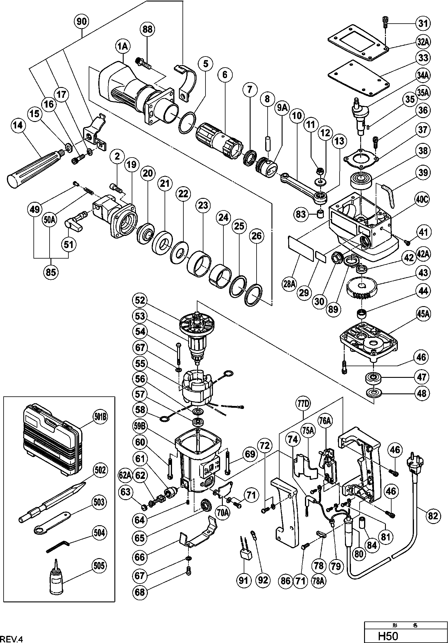 Hier finden Sie alle verfügbaren Teile und Zeichnungen der 'Hikoki H50'. Von hier aus können Sie alle gewünschten Teile direkt bestellen. Viele Teile müssen je nach Marke beim Hersteller bestellt werden, dies dauert ein bis vier Wochen. Alle Informationen, die wir haben, befinden sich auf unserer Website. Wir können Sie nicht beraten, was Sie benötigen. Dazu müssen Sie die Maschine zur Reparatur zurücksenden. Bitte beachten Sie bei der Bestellung Folgendes: