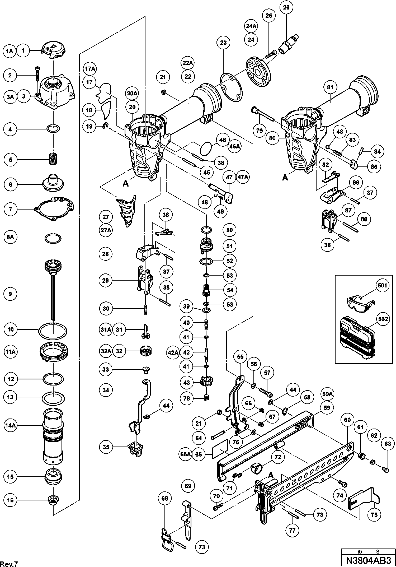 Hier finden Sie alle verfügbaren Teile und Zeichnungen der 'Hikoki N3804AB3'. Von hier aus können Sie alle gewünschten Teile direkt bestellen. Viele Teile müssen je nach Marke beim Hersteller bestellt werden, dies dauert ein bis vier Wochen. Alle Informationen, die wir haben, befinden sich auf unserer Website. Wir können Sie nicht beraten, was Sie benötigen. Dazu müssen Sie die Maschine zur Reparatur zurücksenden. Bitte beachten Sie bei der Bestellung Folgendes: