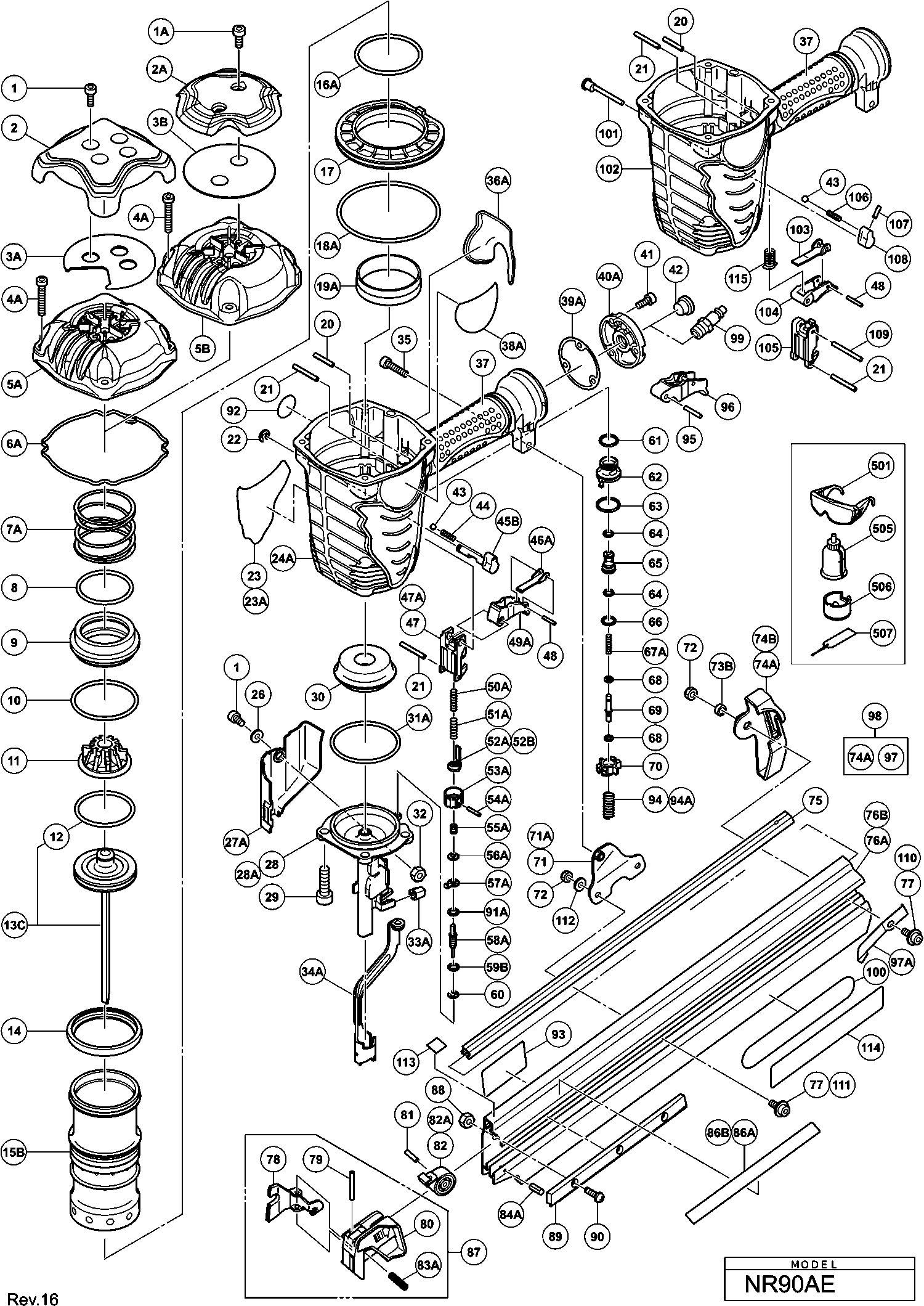 Hier finden Sie alle verfügbaren Teile und Zeichnungen der 'Hikoki NR90AE'. Von hier aus können Sie alle gewünschten Teile direkt bestellen. Viele Teile müssen je nach Marke beim Hersteller bestellt werden, dies dauert ein bis vier Wochen. Alle Informationen, die wir haben, befinden sich auf unserer Website. Wir können Sie nicht beraten, was Sie benötigen. Dazu müssen Sie die Maschine zur Reparatur zurücksenden. Bitte beachten Sie bei der Bestellung Folgendes: