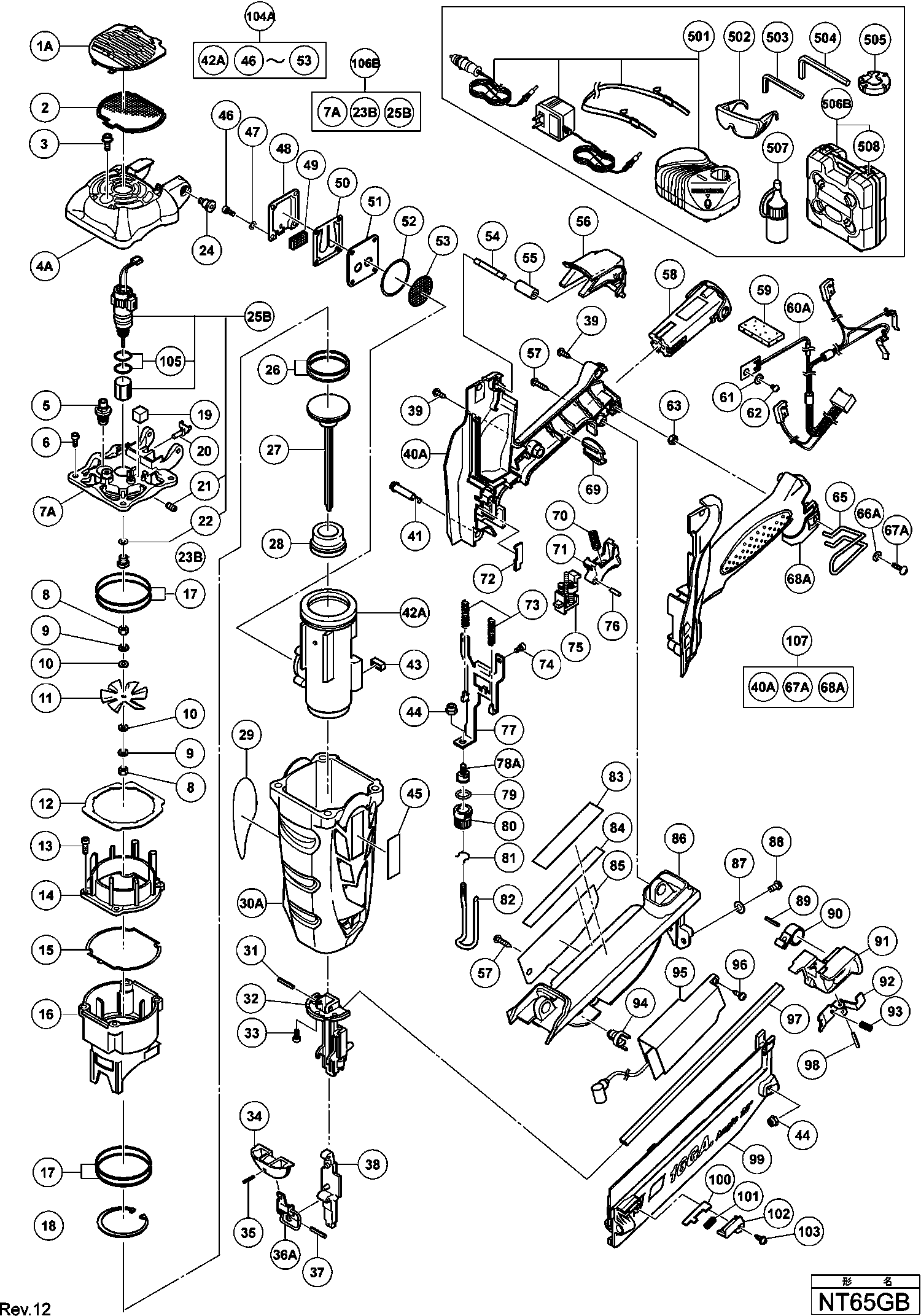 Hier finden Sie alle verfügbaren Teile und Zeichnungen der 'Hikoki NT65GB'. Von hier aus können Sie alle gewünschten Teile direkt bestellen. Viele Teile müssen je nach Marke beim Hersteller bestellt werden, dies dauert ein bis vier Wochen. Alle Informationen, die wir haben, befinden sich auf unserer Website. Wir können Sie nicht beraten, was Sie benötigen. Dazu müssen Sie die Maschine zur Reparatur zurücksenden. Bitte beachten Sie bei der Bestellung Folgendes: