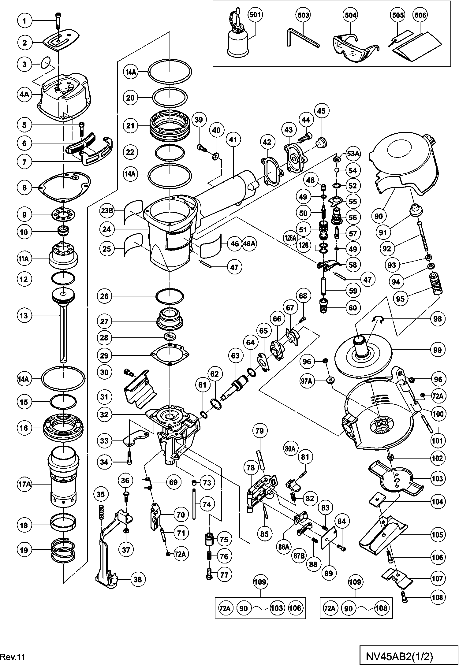 Hier finden Sie alle verfügbaren Teile und Zeichnungen der 'Hikoki NV45AB2'. Von hier aus können Sie alle gewünschten Teile direkt bestellen. Viele Teile müssen je nach Marke beim Hersteller bestellt werden, dies dauert ein bis vier Wochen. Alle Informationen, die wir haben, befinden sich auf unserer Website. Wir können Sie nicht beraten, was Sie benötigen. Dazu müssen Sie die Maschine zur Reparatur zurücksenden. Bitte beachten Sie bei der Bestellung Folgendes: