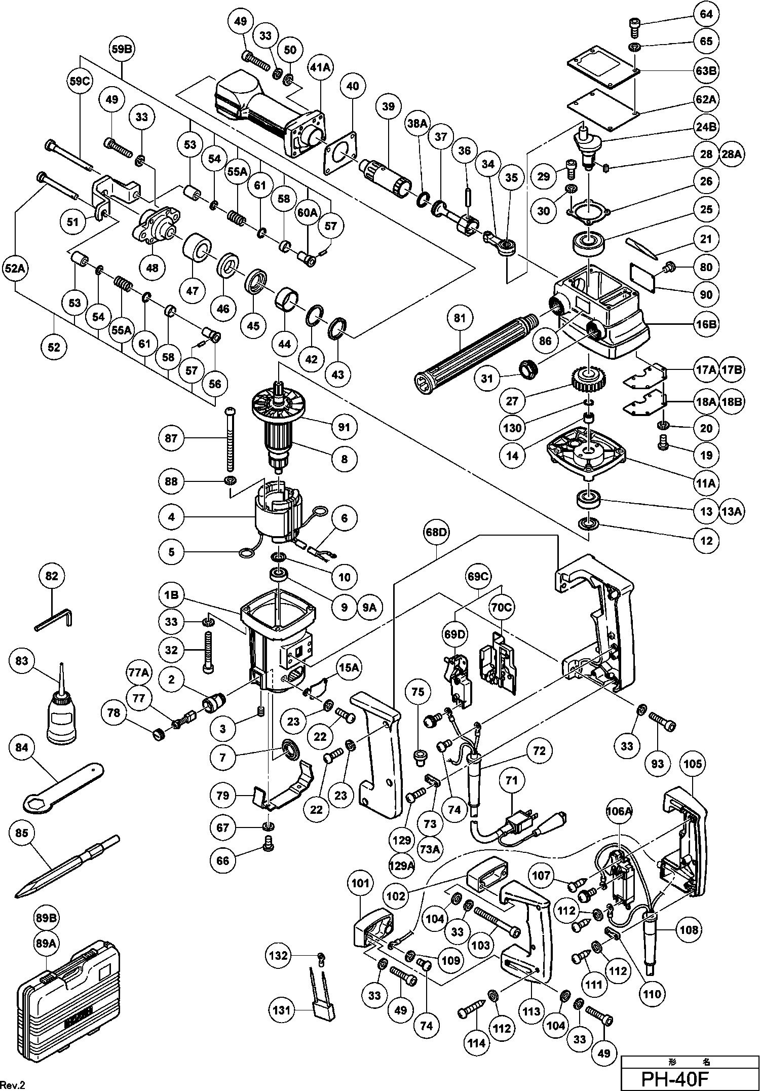 Hier finden Sie alle verfügbaren Teile und Zeichnungen der 'Hikoki PH-40F'. Von hier aus können Sie alle gewünschten Teile direkt bestellen. Viele Teile müssen je nach Marke beim Hersteller bestellt werden, dies dauert ein bis vier Wochen. Alle Informationen, die wir haben, befinden sich auf unserer Website. Wir können Sie nicht beraten, was Sie benötigen. Dazu müssen Sie die Maschine zur Reparatur zurücksenden. Bitte beachten Sie bei der Bestellung Folgendes: