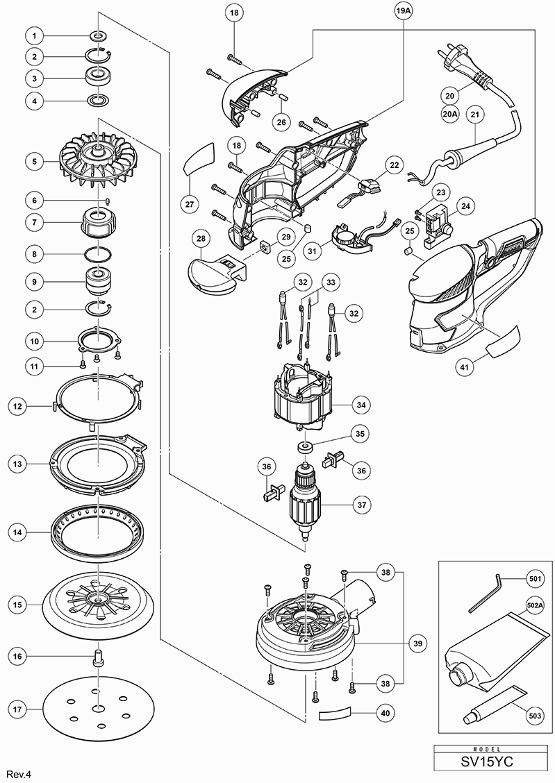 Hier finden Sie alle verfügbaren Teile und Zeichnungen der 'Hikoki SV15YCWBZ'. Von hier aus können Sie alle gewünschten Teile direkt bestellen. Viele Teile müssen je nach Marke beim Hersteller bestellt werden, dies dauert ein bis vier Wochen. Alle Informationen, die wir haben, befinden sich auf unserer Website. Wir können Sie nicht beraten, was Sie benötigen. Dazu müssen Sie die Maschine zur Reparatur zurücksenden. Bitte beachten Sie bei der Bestellung Folgendes: