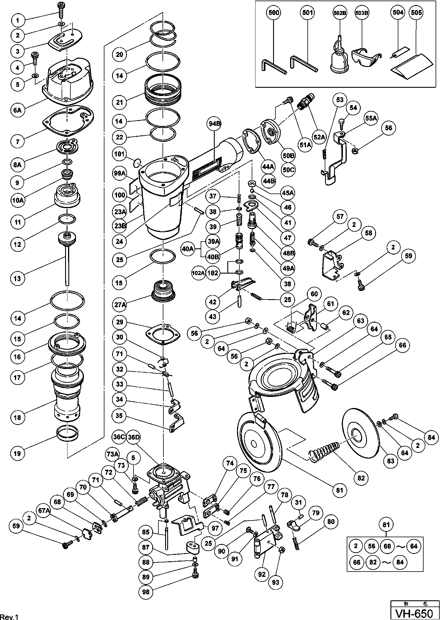 Hier finden Sie alle verfügbaren Teile und Zeichnungen der 'Hikoki VH-650'. Von hier aus können Sie alle gewünschten Teile direkt bestellen. Viele Teile müssen je nach Marke beim Hersteller bestellt werden, dies dauert ein bis vier Wochen. Alle Informationen, die wir haben, befinden sich auf unserer Website. Wir können Sie nicht beraten, was Sie benötigen. Dazu müssen Sie die Maschine zur Reparatur zurücksenden. Bitte beachten Sie bei der Bestellung Folgendes: