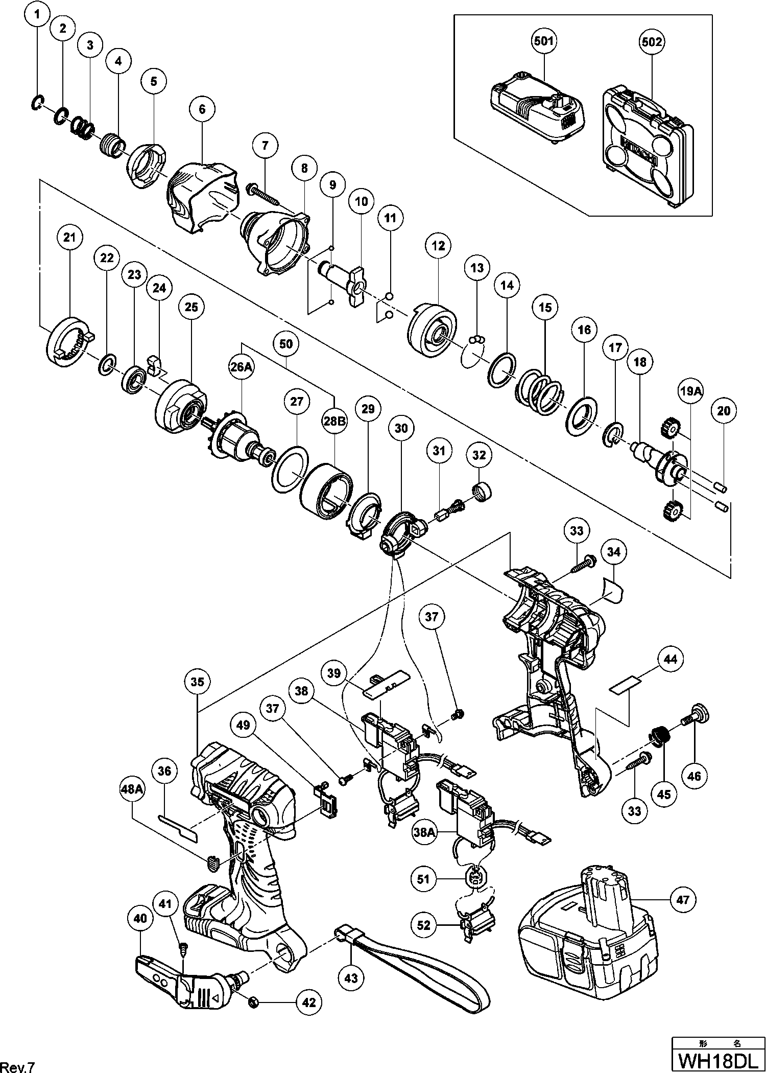 Hier finden Sie alle verfügbaren Teile und Zeichnungen der 'Hikoki WH18DL'. Von hier aus können Sie alle gewünschten Teile direkt bestellen. Viele Teile müssen je nach Marke beim Hersteller bestellt werden, dies dauert ein bis vier Wochen. Alle Informationen, die wir haben, befinden sich auf unserer Website. Wir können Sie nicht beraten, was Sie benötigen. Dazu müssen Sie die Maschine zur Reparatur zurücksenden. Bitte beachten Sie bei der Bestellung Folgendes: