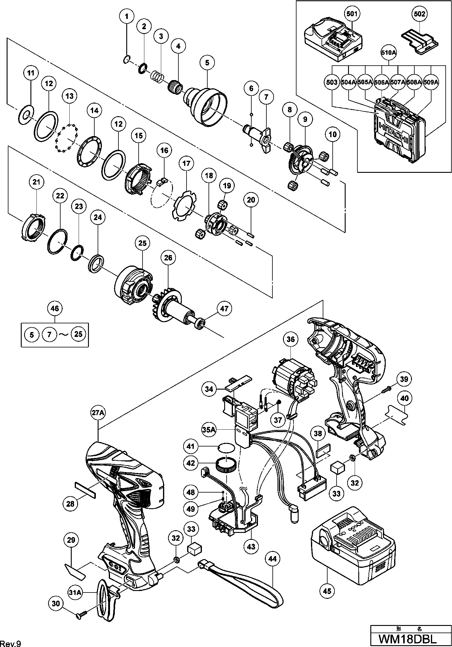 Hier finden Sie alle verfügbaren Teile und Zeichnungen der 'Hikoki WM18DBL'. Von hier aus können Sie alle gewünschten Teile direkt bestellen. Viele Teile müssen je nach Marke beim Hersteller bestellt werden, dies dauert ein bis vier Wochen. Alle Informationen, die wir haben, befinden sich auf unserer Website. Wir können Sie nicht beraten, was Sie benötigen. Dazu müssen Sie die Maschine zur Reparatur zurücksenden. Bitte beachten Sie bei der Bestellung Folgendes: