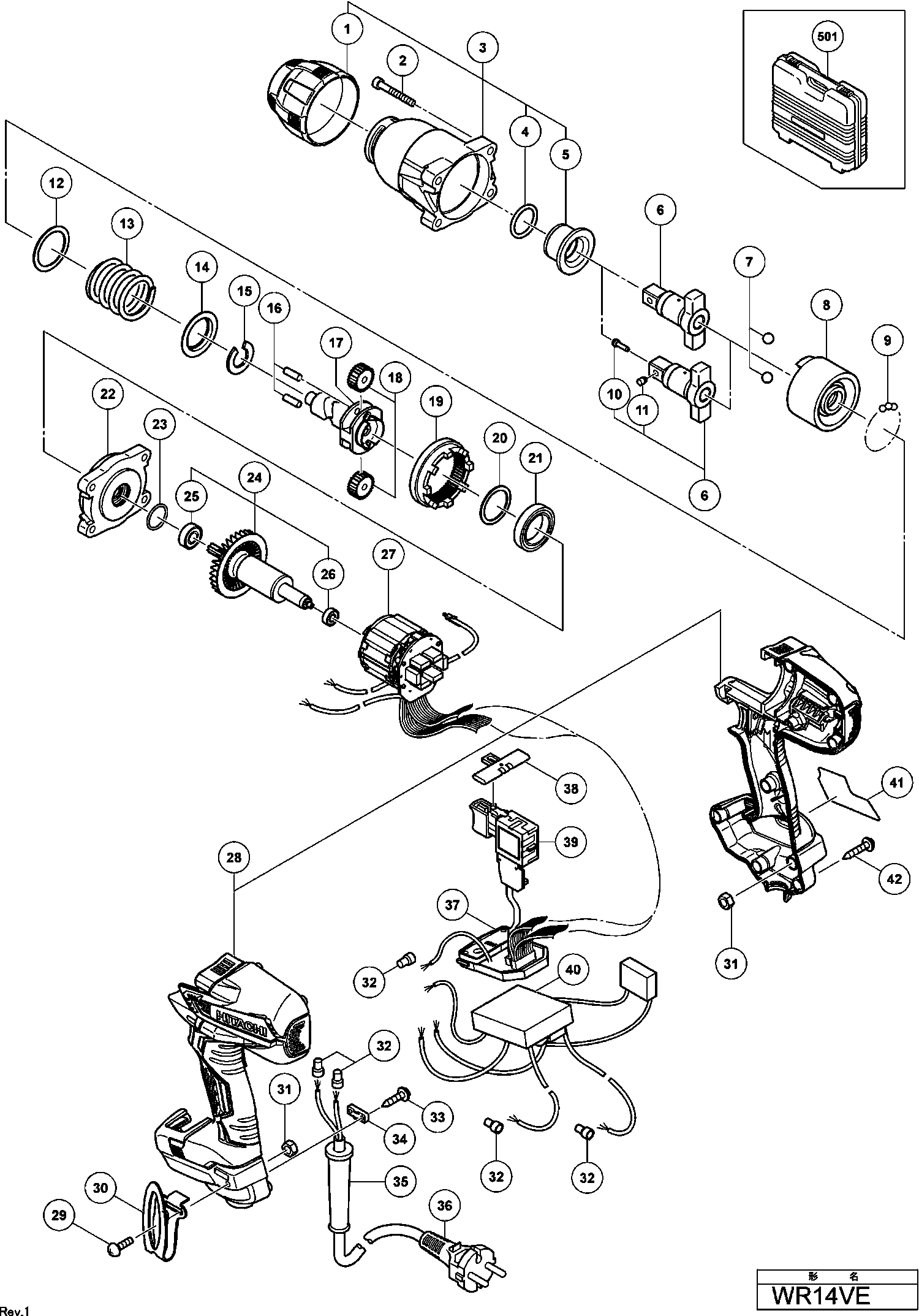 Hier finden Sie alle verfügbaren Teile und Zeichnungen der 'Hikoki WR14VE'. Von hier aus können Sie alle gewünschten Teile direkt bestellen. Viele Teile müssen je nach Marke beim Hersteller bestellt werden, dies dauert ein bis vier Wochen. Alle Informationen, die wir haben, befinden sich auf unserer Website. Wir können Sie nicht beraten, was Sie benötigen. Dazu müssen Sie die Maschine zur Reparatur zurücksenden. Bitte beachten Sie bei der Bestellung Folgendes: