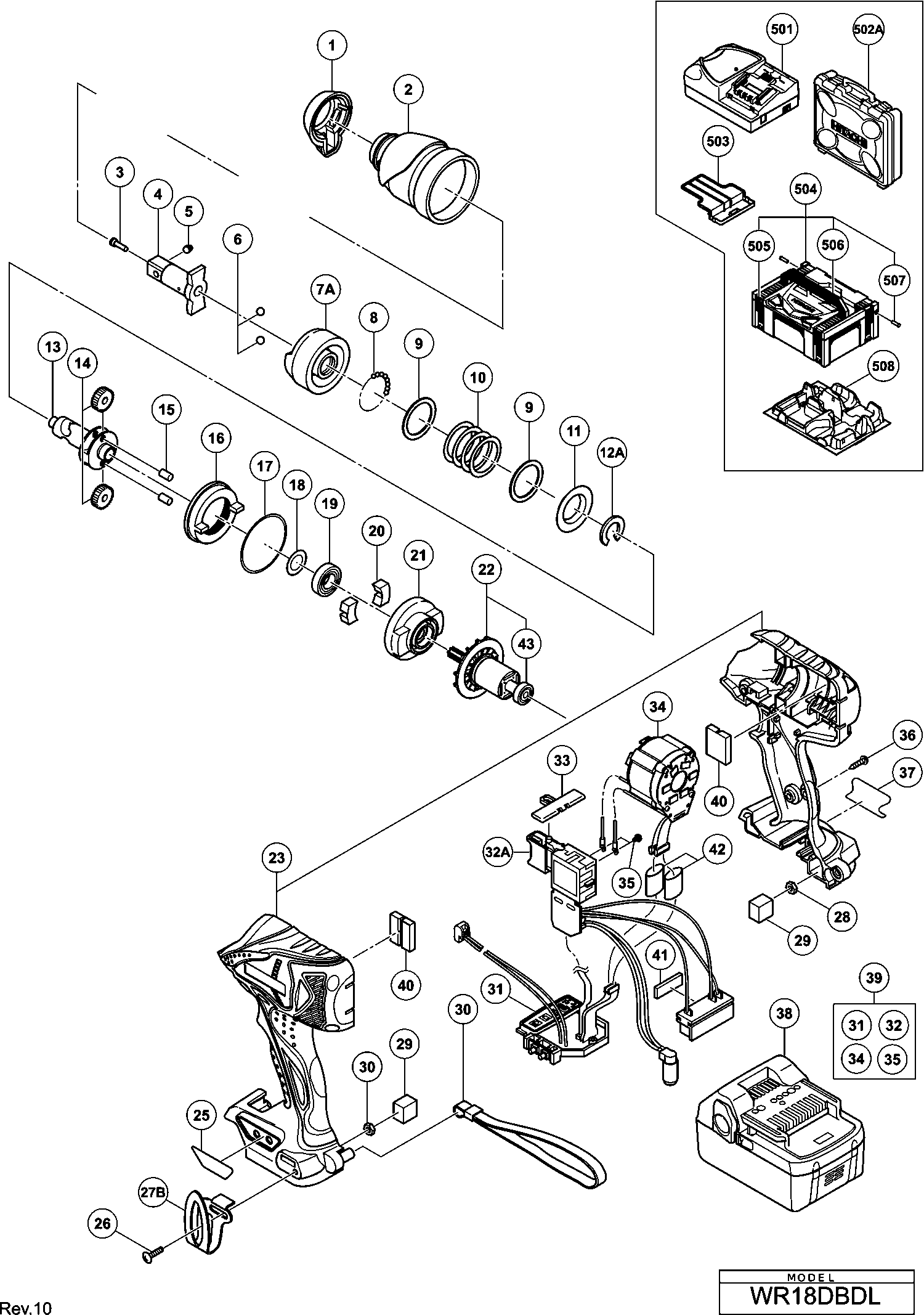 Hier finden Sie alle verfügbaren Teile und Zeichnungen der 'Hikoki WR18DBDL'. Von hier aus können Sie alle gewünschten Teile direkt bestellen. Viele Teile müssen je nach Marke beim Hersteller bestellt werden, dies dauert ein bis vier Wochen. Alle Informationen, die wir haben, befinden sich auf unserer Website. Wir können Sie nicht beraten, was Sie benötigen. Dazu müssen Sie die Maschine zur Reparatur zurücksenden. Bitte beachten Sie bei der Bestellung Folgendes:
