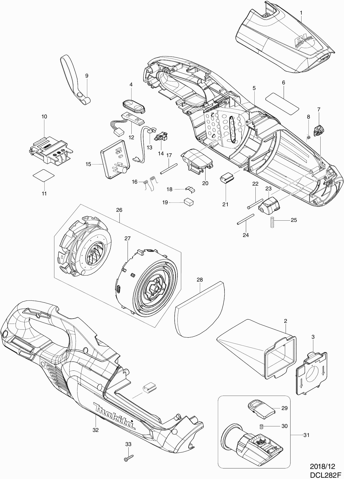 Teileliste der Makita DCL282F