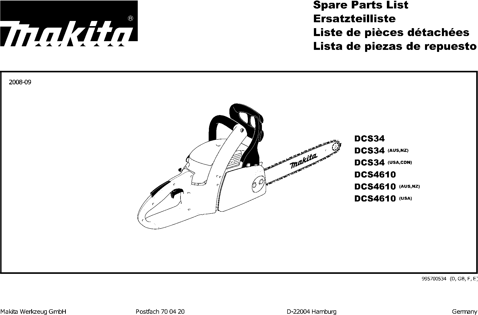 Teileliste der Makita DCS4610