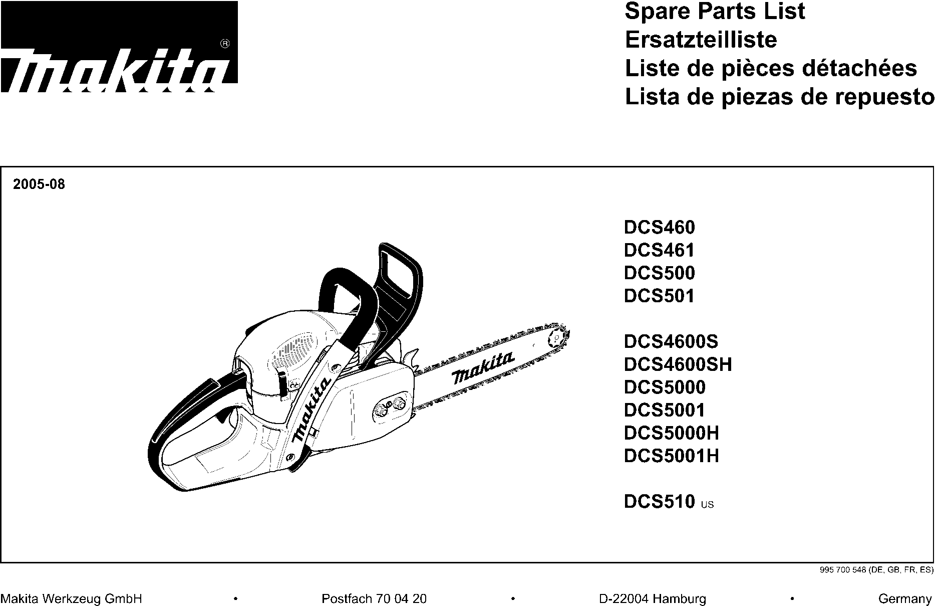 Teileliste der Makita DCS501