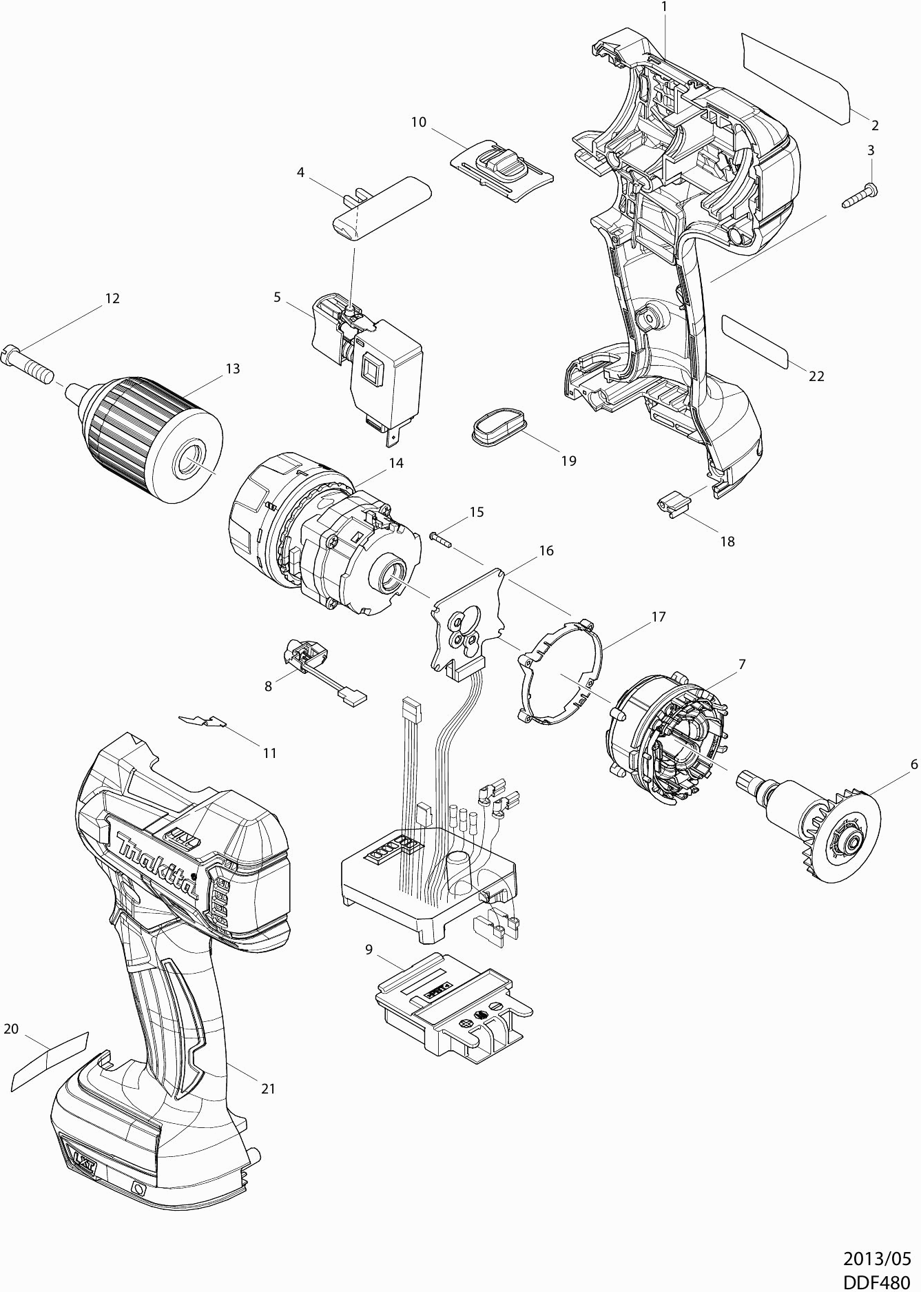 Teileliste der Makita DDF480