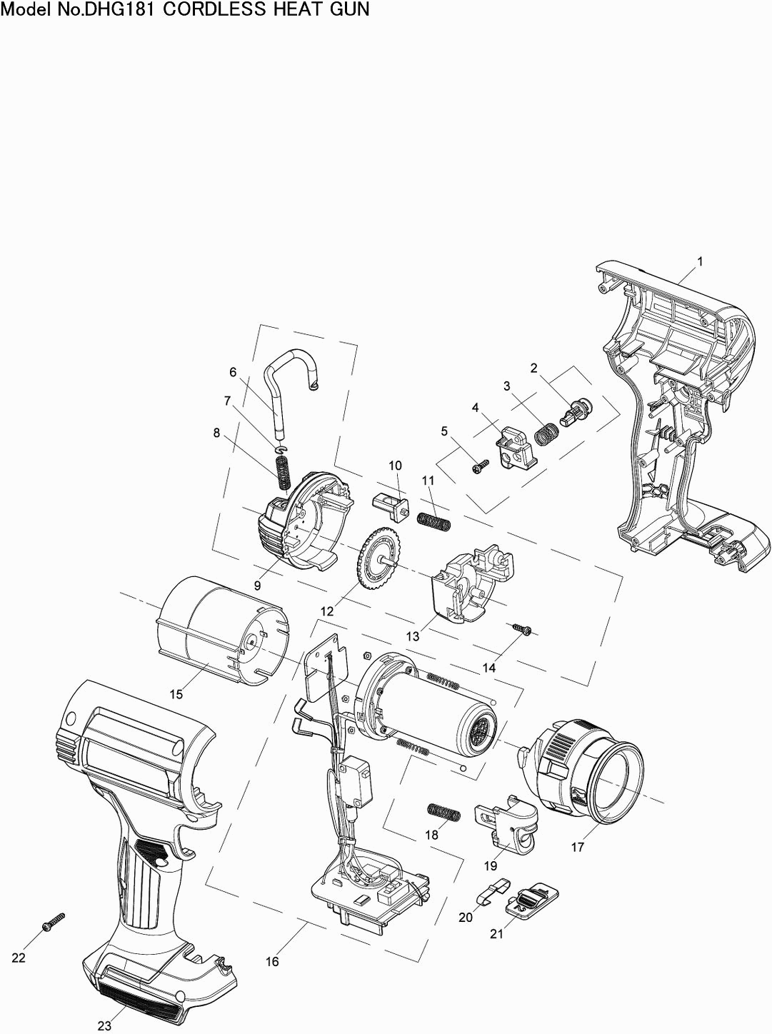 Hier finden Sie alle verfügbaren Teile und Zeichnungen der 'Makita DHG181'. Von hier aus können Sie alle gewünschten Teile direkt bestellen. Viele Teile müssen je nach Marke beim Hersteller bestellt werden, dies dauert ein bis vier Wochen. Alle Informationen, die wir haben, befinden sich auf unserer Website. Wir können Sie nicht beraten, was Sie benötigen. Dazu müssen Sie die Maschine zur Reparatur zurücksenden. Bitte beachten Sie bei der Bestellung Folgendes: