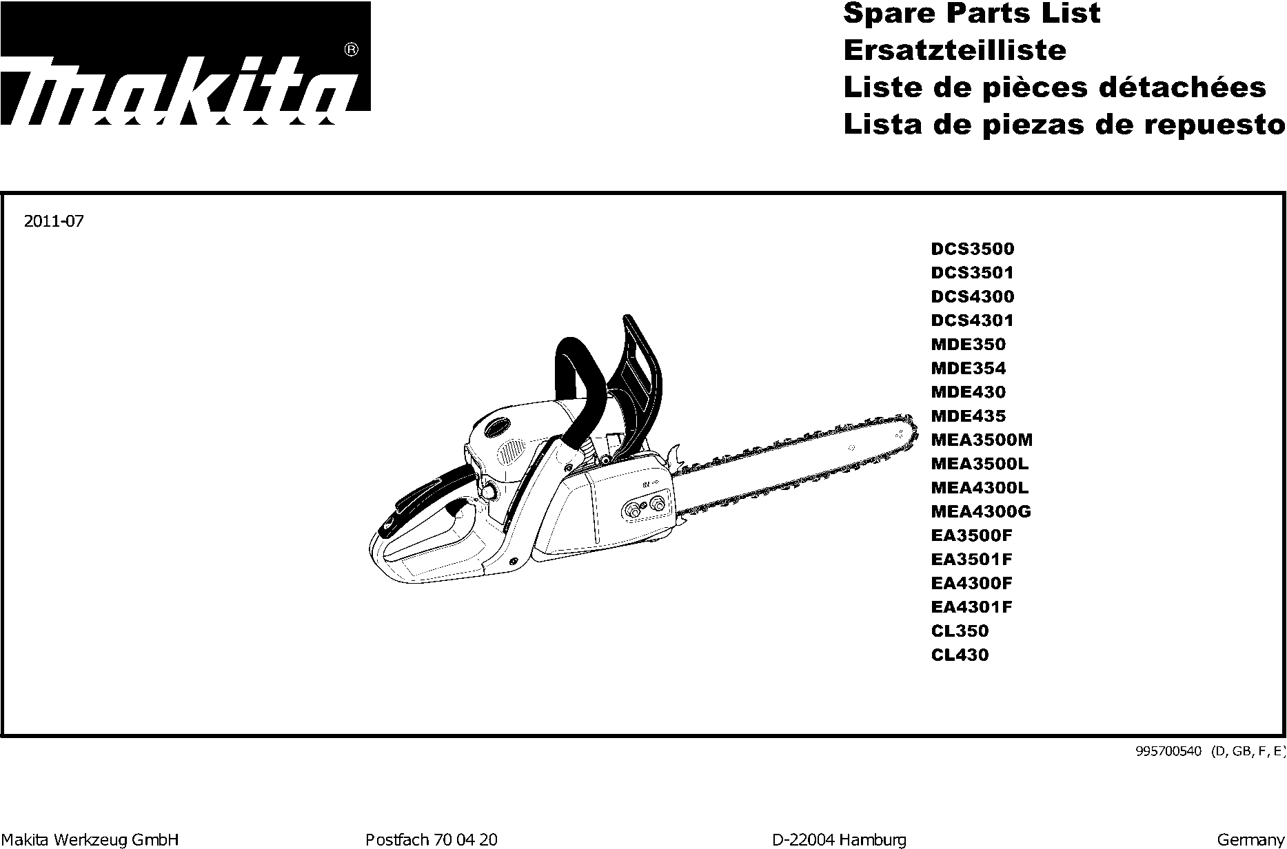 Teileliste der Makita EA4300F
