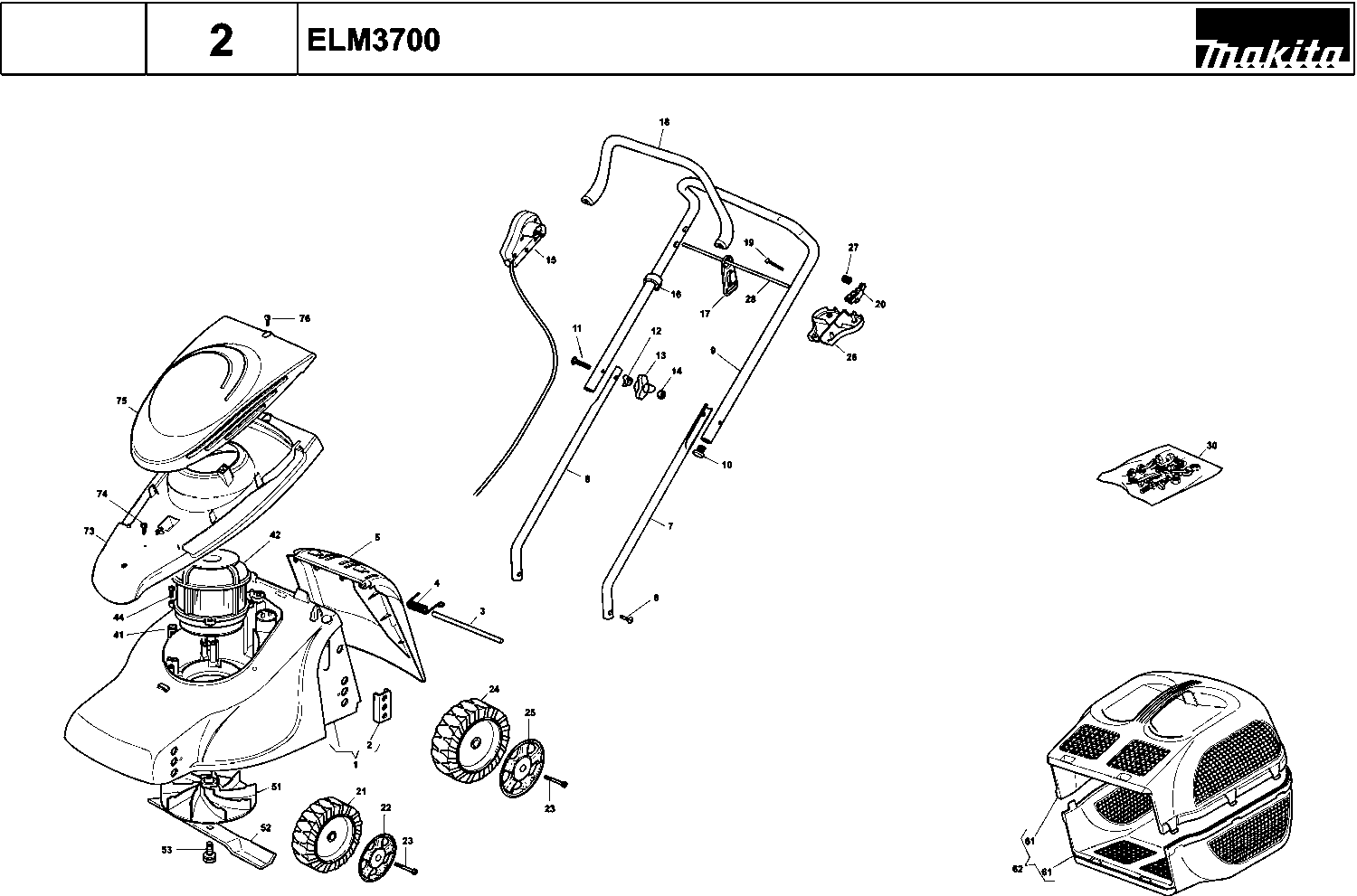 Teileliste der Makita ELM3700